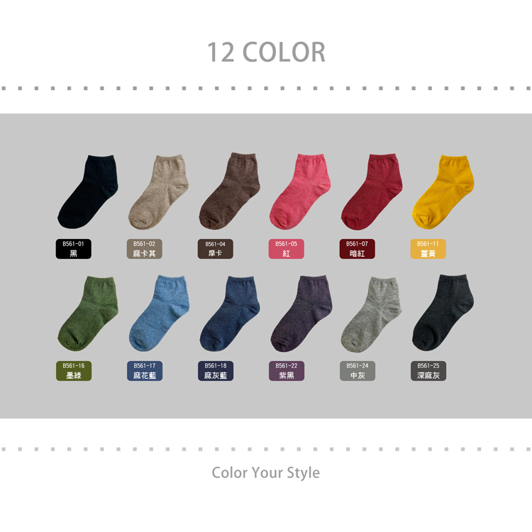 【BVD】1/2素面直角女襪<深麻灰>B561 女襪 短襪 休閒穿搭襪