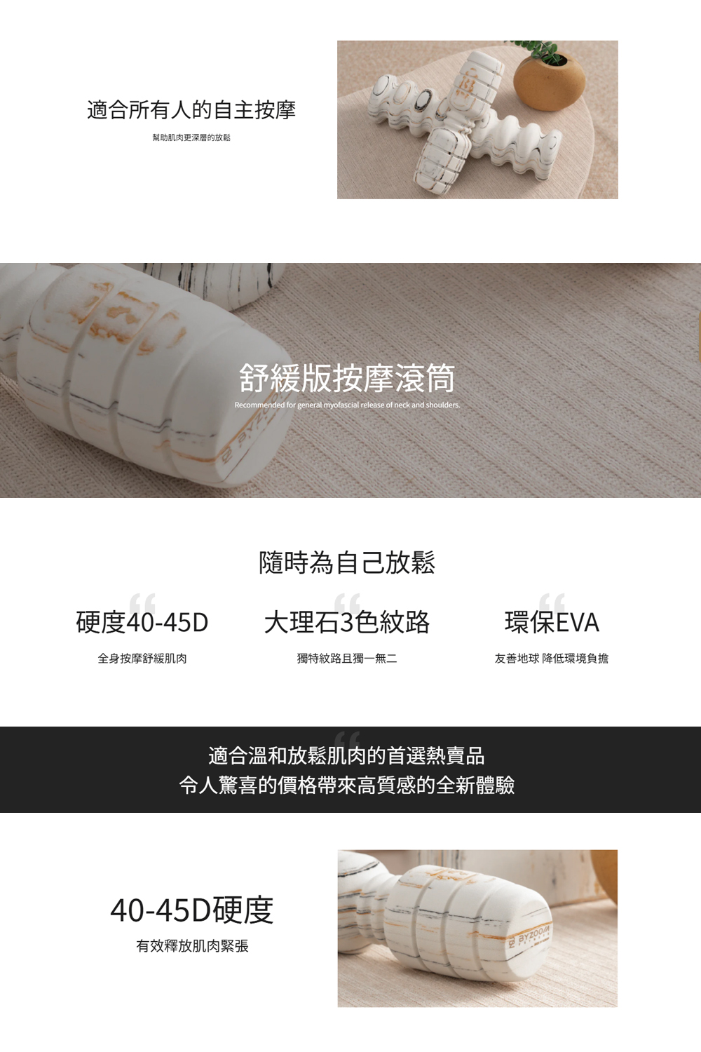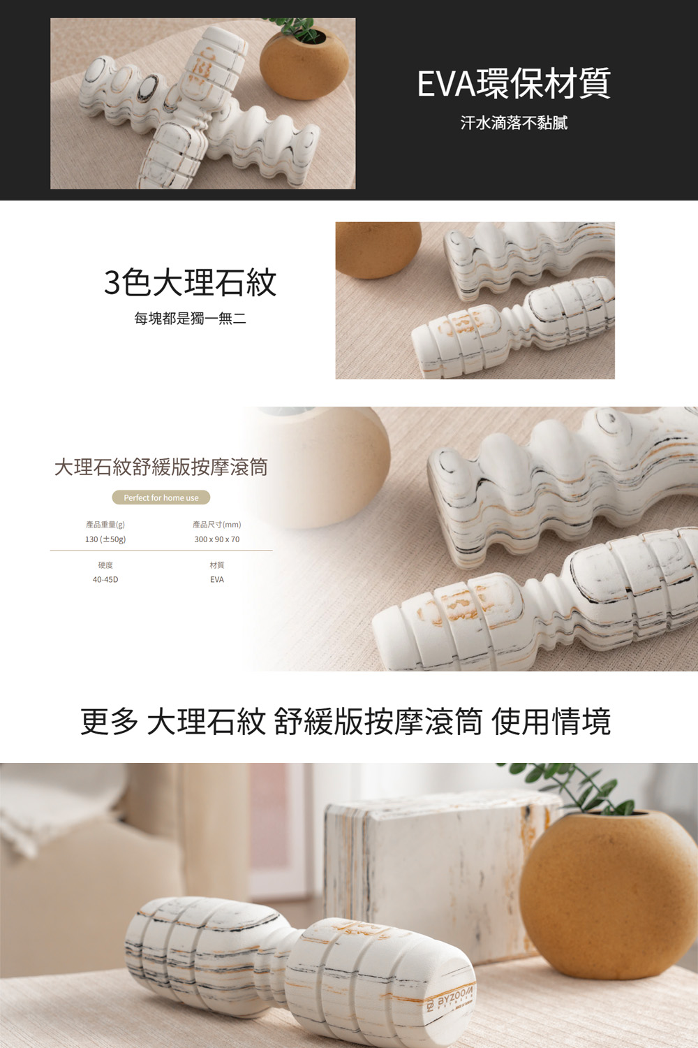 【BYZOOM FITNESS】大理石紋 舒緩版按摩滾筒