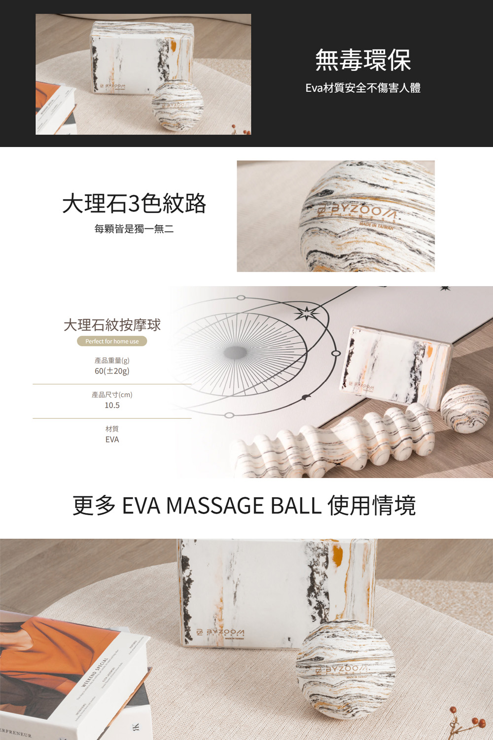 【BYZOOM FITNESS】大理石紋按摩球