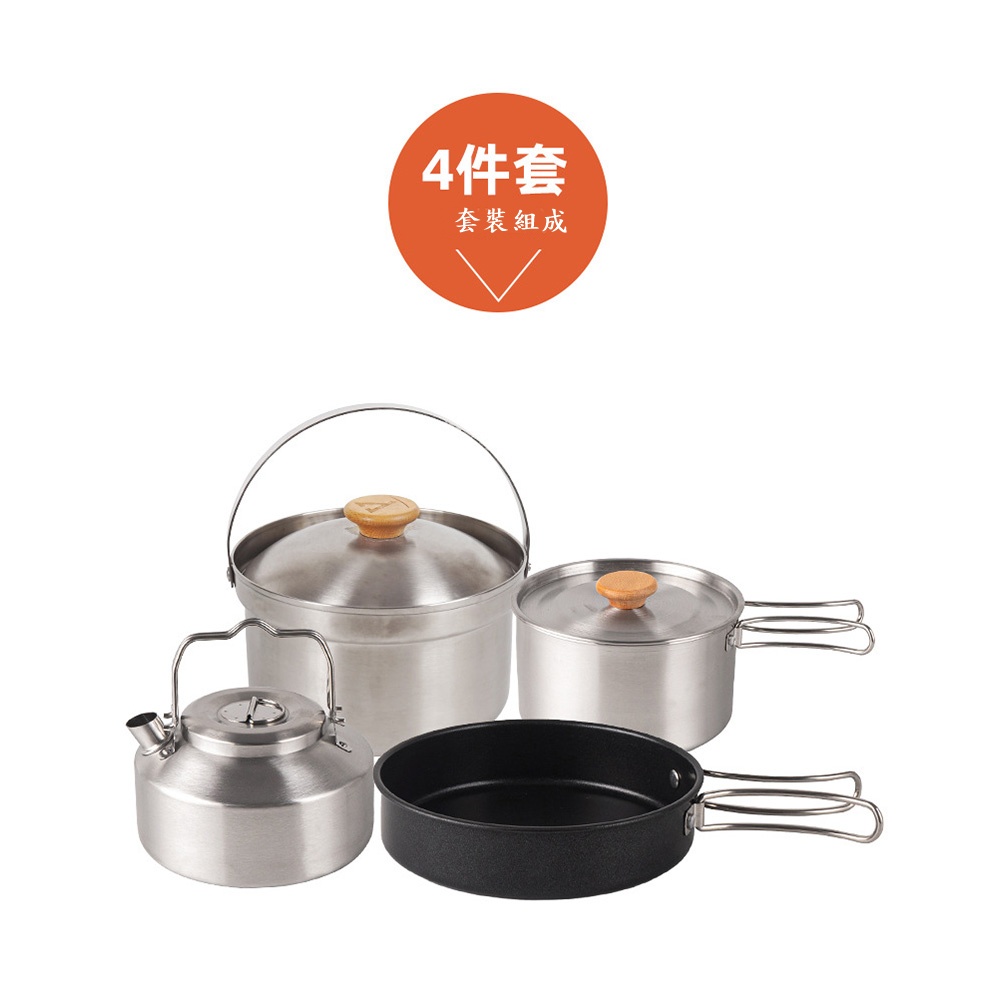 Caiyi 4件套 不銹鋼鍋具組 露營套鍋 野營鍋 戶外鍋具