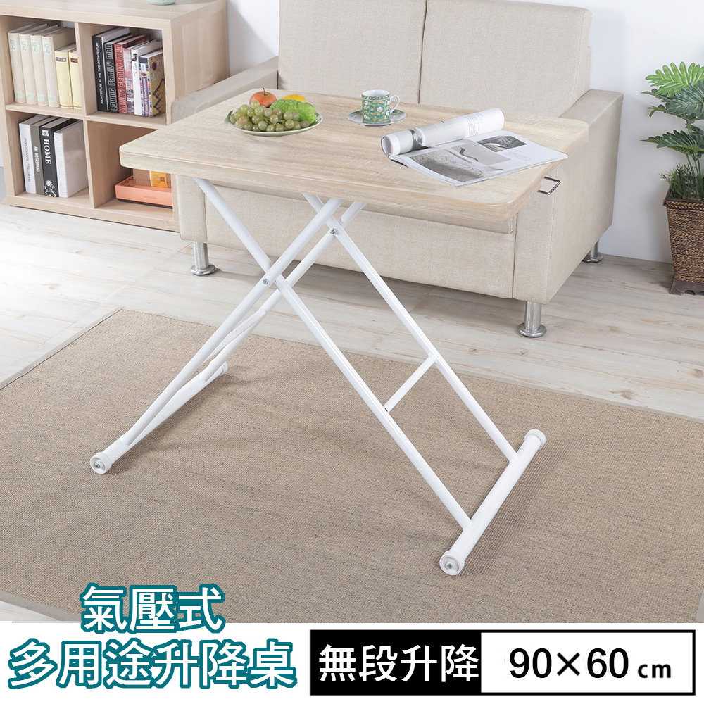 《C&B》中崎氣壓式90*60CM桌面加厚氣壓升降桌便利桌/台灣生產-木紋純白色