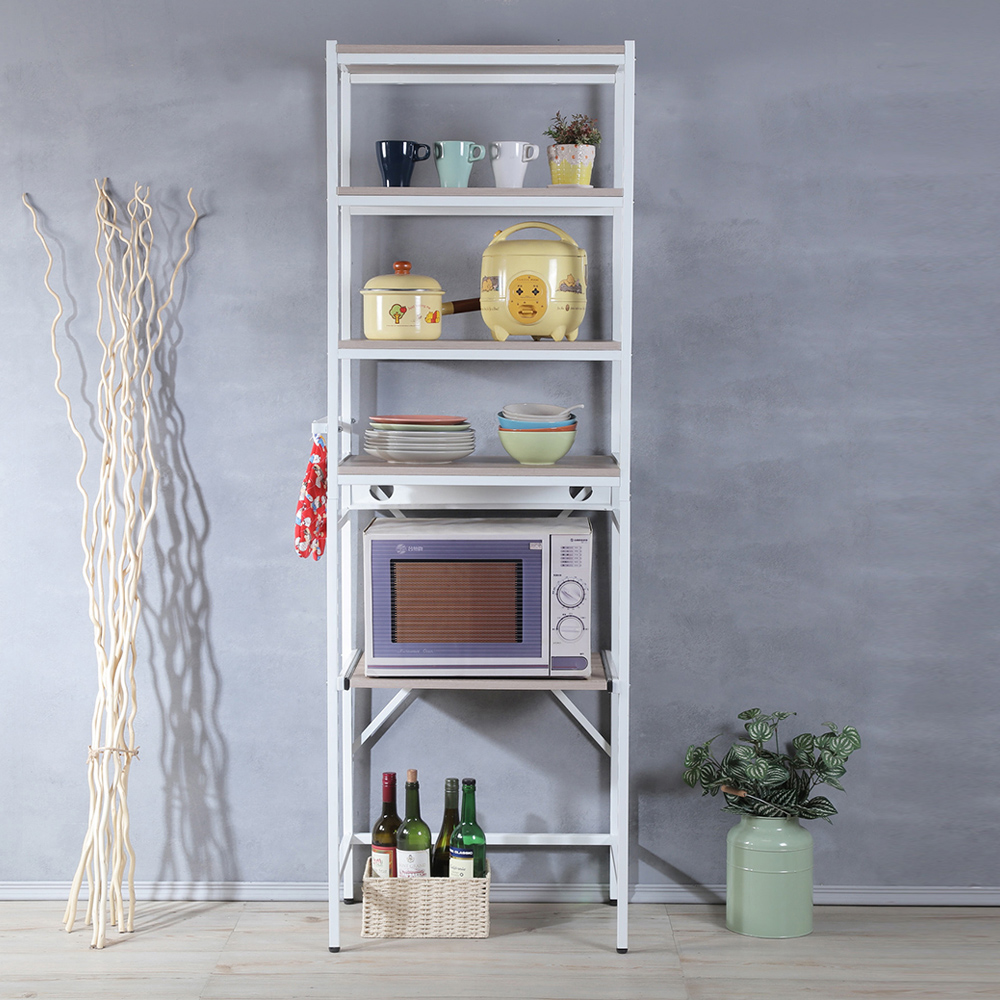 環保意識席捲全球,強調機能與外型的日本消費者,都開始回歸最基本的採購需求,設計新穎、簡單實用又兼具質感的商品目前在日本大行其道,《Justice》系列商品就是這波宅經濟的代表商品。《C&B》Justice依得多用途廚房衛浴收納置物架,是日本最新流行的復古『鐵』+『木』的組合商品,黑色或白色烤漆的鐵管與木材紋路的木板,整體營造出工業復古風格,高質感有格調,100%台灣生產,採用符合日本市場要求的板材,表面使用防刮耐潑水的加硬美耐板處理,鐵管則是高質感的粉體塗裝烤漆,無論是層板的用料或鐵管的厚度與規格皆是外銷商品的要求,質感佳耐用性強。可依自己本身需要調整是本商品的設計重點,側框從上到下共有32個孔位可供安裝層板,您可自行決定將四個層板與一個拉板安裝在任一個您想安裝的高度,完全符合您自身的使用需求,客製化般的貼心猶如量身訂做。層板尺寸56x40cm適用於所有的廚房家電,因為層板可以調整在任何的高度,廚房的各種家電無論現在正夯的氣炸鍋還是烤箱與微波爐都可收納,有上蓋的炊飯鍋或熱水瓶更可放置於活動拉板上,除了活動板還有多達4片的移動層板,廚房所有物品都能完整收納,絕對是最稱職的廚房置物架,擺放於洗衣室或衛浴空間內也非常適當哦。此外,有ㄇ形掛架能吊掛抹布毛巾或隔熱手套,在層板下方也設計了一個延長線插座放置架,在廚房家電種類越來越多的今日,貼心設計讓您使用電器線材不凌亂。收納力:1. 置物層板x42. 活動拉板x13. ㄇ形掛架x1 4. 延長線插座放置架x1機能性:1. 所有層板皆可調整使用位置共32段可調整2. 底部調整腳墊,可微調高度防止地面不平設計性:1. 工業風格兩種異素材的搭配,造型優雅2. 流行的外表,放置於室內使用提升質感■商品規格尺寸 : 約(W)60~64(ㄇ形掛架)*(D)40~73(拉板拉出後)*(H)181CM主要材質 : 鐵管(粉體塗裝)、高密度塑合板(表面美耐或PVC皮處理)產地 : 台灣■注意事項1.本商品附詳細組裝說明書,需DIY自行組裝。2.DIY商品經組裝後恕不接受退貨,請先確認商品是否符合要求。3.本商品僅配送至送貨地址一樓,無協助配送上樓,若司機願意配送上樓可能會有樓層費。4.商品圖檔顏色因電腦螢幕設定差異會略有不同,請以收到的實際商品顏色為準。5.若需退貨,請保持商品及包裝之完整性,無法回復原出貨之完整包裝恕不接受退換貨。6.送達地點有否限制:限本島,外島須外加運費。我們將事先與消費者聯繫報價,議定外島運費後,訂單始成立。7.本島偏遠地區接單說明:物流業者定義之本島偏遠地區接單須另加聯運費。我們將事先與消費者聯繫報價,議定聯運費後,訂單始成立。8.鑑賞期限制說明:溫馨提醒,鑑賞期非試用期, 敬請確認商品無瑕庛問題並確認購買後再使用。9.收到貨品時,要將外箱保留至鑑賞期結束,不要讓貨運公司將外箱帶走,換貨時換貨商品必須是全新狀態(不得有刮傷),並有完整的包裝,包含外紙箱、配件紙箱、保麗龍、保護袋、贈品等所有附隨文件或資料之完整性。10.偏遠地區概略表:以下地區為物流公司定義之偏遠地區,若有增刪皆以物流公司的認定為準。(1).新竹:尖石鄉、五峰鄉 (2).苗栗:泰安鄉 (3).台中:梨山、谷關、環山、和平鄉 (4).南投:鹿谷鄉、仁愛鄉 (5).雲林:古坑鄉 (6).嘉義:阿里山鄉、梅山鄉、嘉義農場 (7).高雄:內門鄉、杉林鄉、甲仙鄉、六龜鄉、甲仙鄉(小林村)、六龜鄉(寶來村) (8).屏東:霧台鄉、春日鄉、泰武鄉、三地門鄉 (9).宜蘭:大同鄉、南澳鄉 (10).花蓮:秀林鄉、池上鄉、海端鄉 (11).台東:長濱鄉、東河鄉(北源村)、台東地區(牧場&監獄)