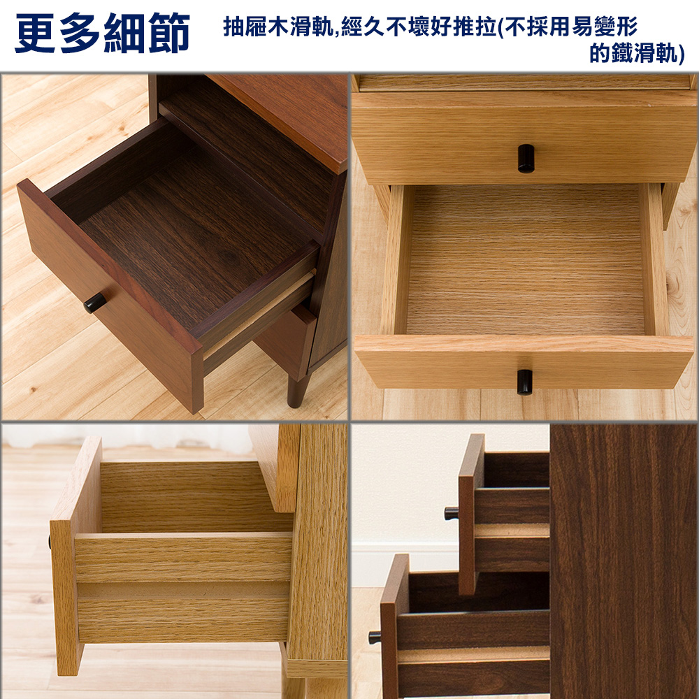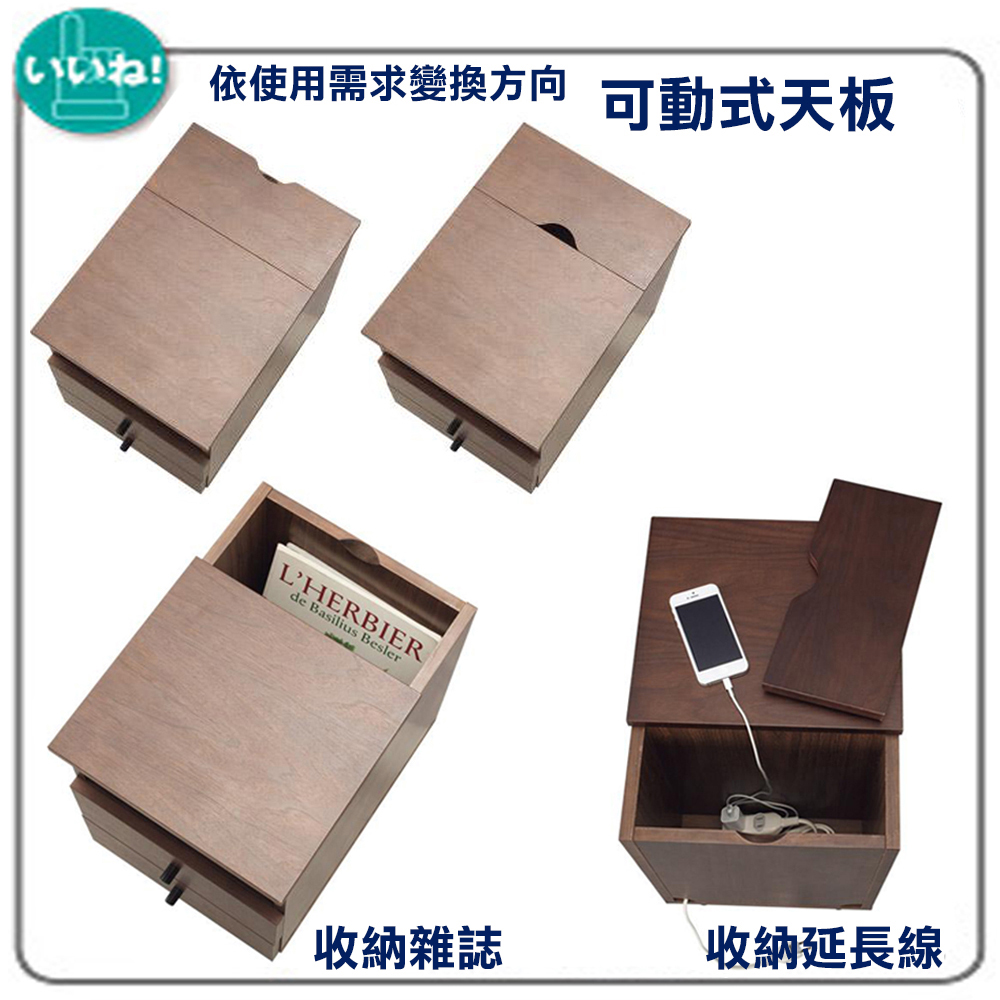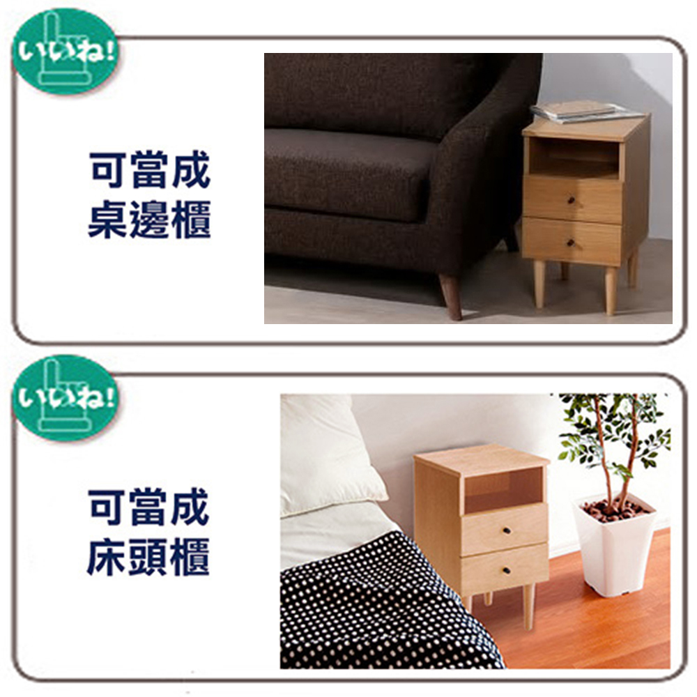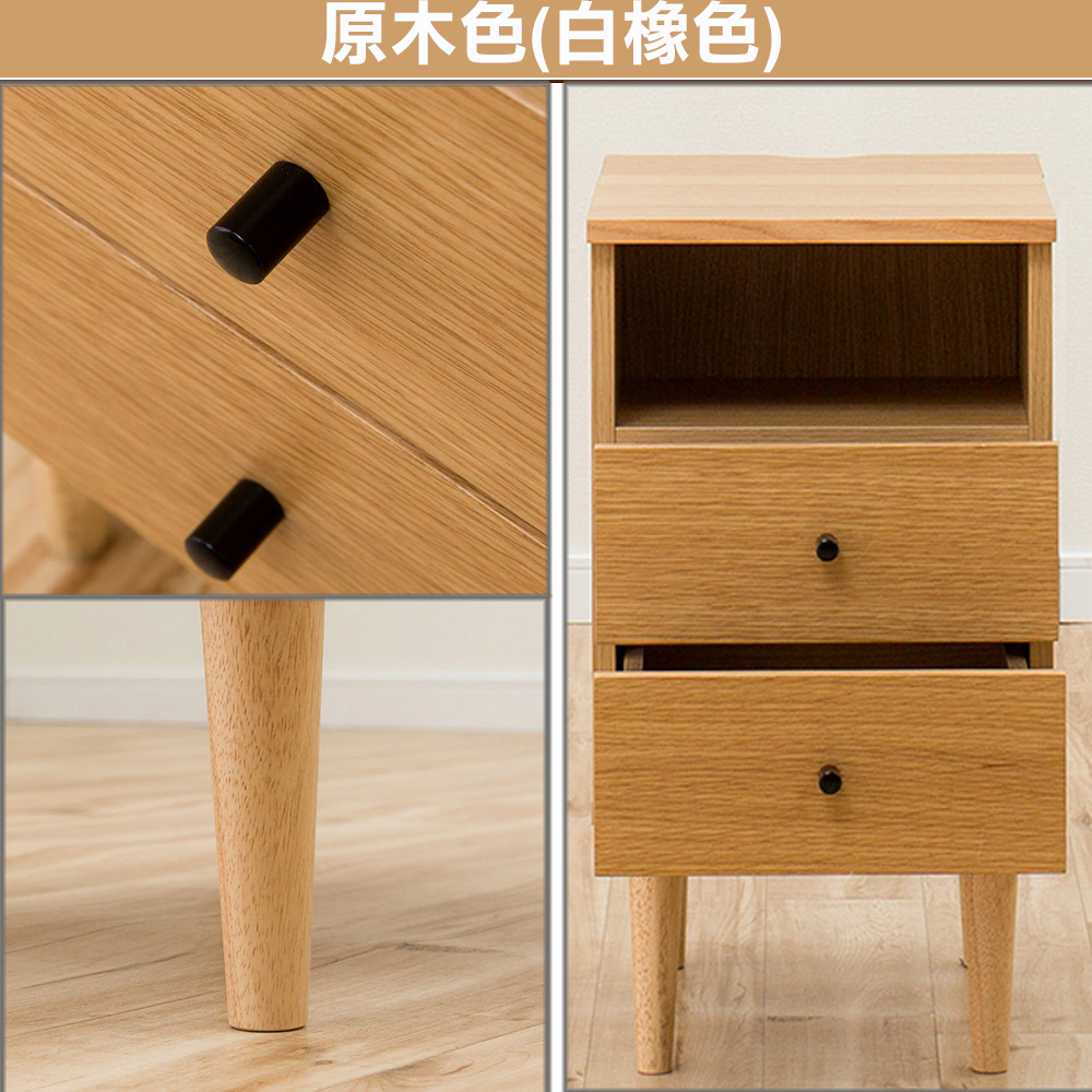 《代代木》和風實用收納床邊櫃,櫃腳的造型有濃厚的伊姆斯風格,將結構、功能、心理、美學等元素貫穿於產品設計的各個方面,洋溢著現代、簡約的氣息!《代代木》和風實用收納床邊櫃,是台灣生產外銷日本的商品,天板與抽屜面板皆使用高密度纖維板材質,外表再貼覆實木泊片,外觀看起來與實木無異,在環保意識高漲的今日日本,砍樹而生產的實木家具已經不再受歡迎,替代性材質是對地球友善的表現,兼具質感與愛護樹木是《代代木》和風實用收納床邊櫃的設計理念!櫃腳以北歐風格伊姆斯的外形設計,結構強韌耐久性佳,天然的實木紋路,細緻的表面加工,櫃腳底下與地面接觸處有防滑的絨布貼片的貼心設計,保護您的地板!《代代木》和風實用收納床邊櫃,靈巧不占空間卻有多種機能,天板後方為可動式天板設計,內部收納空間當成雜誌收納架,能夠收納您隨手閱讀過的報章雜誌,將延長線放入且背後有配線孔的貼心設計,更方便您在櫃子上放置家電或充電器等物品! 此外也設計有兩個收納抽屜,讓本商品就像個百寶櫃一樣收納力驚人,把它當成床頭櫃、桌邊櫃、雜誌架等都很合適喔!《代代木》和風實用收納床邊櫃,共有胡桃木和白橡木兩色可選,居家的空間裡擺設此收納櫃,增加了和風的氛圍,這個優質好用又具設計感的收納櫃,也值得向您推薦!■商品規格 尺寸 : 約寬30×深41×高55公分 前開放式收納空間:寬26.5x深24x高11.5公分 後收納格:寬26.5x深11x高35.5公分 上抽屜內寸:寬23x深22.5x高7.5公分 下抽屜內寸:寬23x深22.5x高9公分 材質:櫃腳:實木 天板、抽屜面板:MDF板貼胡桃木實木皮或白橡木實木皮 櫃體:MDF板貼化妝紙 產地 : 台灣 ■注意事項 1.不需DIY,打開紙箱後僅需旋上四個櫃腳即可使用。 2.若需退貨,請保持商品及包裝之完整性,無法回復原出貨之完整包裝恕不接受退換貨。 3.送達地點有否限制:限本島,外島須外加運費。我們將事先與消費者聯繫報價,議定外島運費後,訂單始成立。 4.本島偏遠地區接單說明:本島的偏遠地區接單須另加聯運費。我們將事先與消費者聯繫報價,議定聯運費後,訂單始成立。 5.鑑賞期限制說明:溫馨提醒,鑑賞期非試用期, 敬請確認商品無瑕庛問題並確認購買後再使用。 6.收到貨品時,要將外箱保留至鑑賞期結束,不要讓貨運公司將外箱帶走,換貨時換貨商品必須是全新狀態(不得有刮傷),並有完整的包裝,包含外紙箱、配件紙箱、保麗龍、保護袋、贈品等所有附隨文件或資料之完整性。
