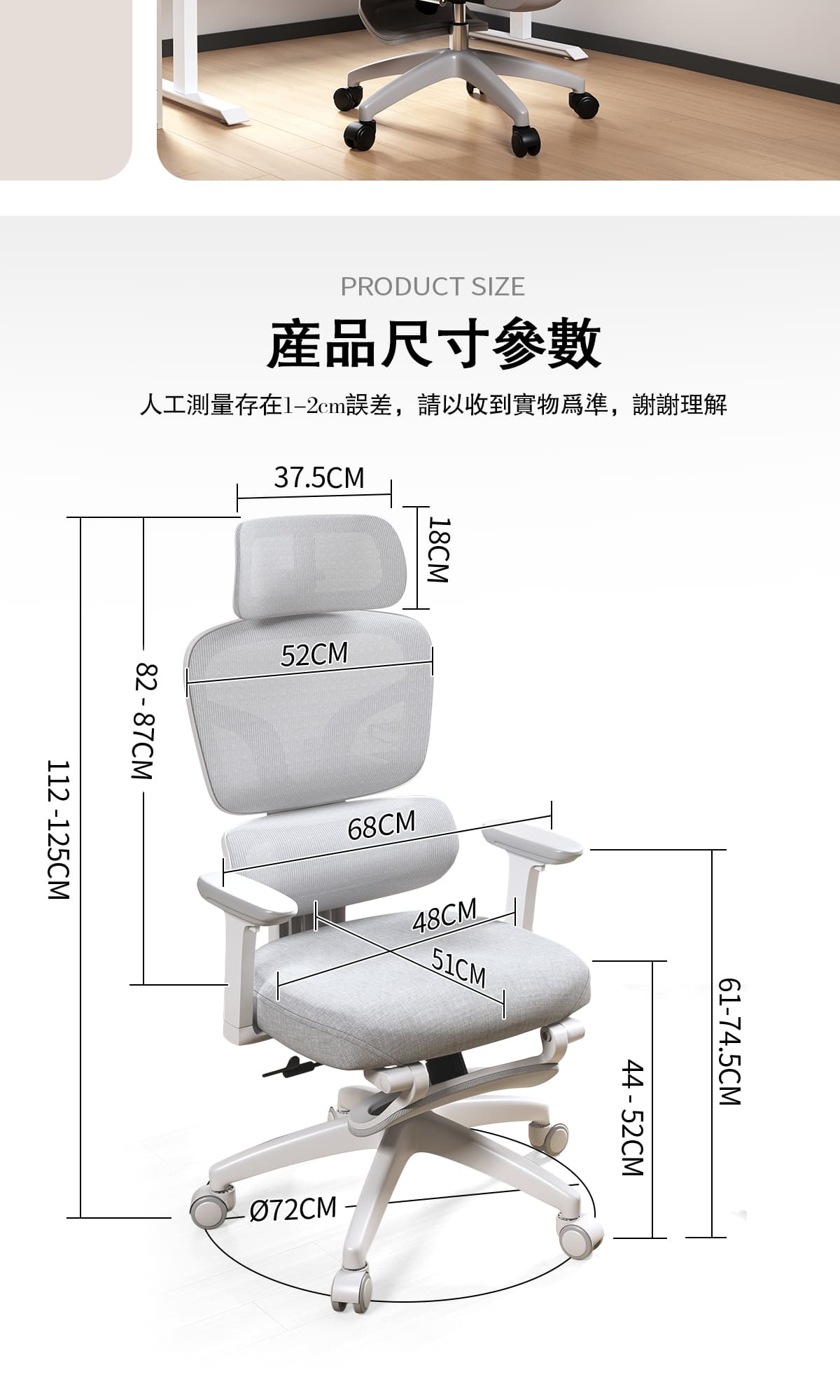 -3D調節頭枕+3D多功能扶手,適應多種使用