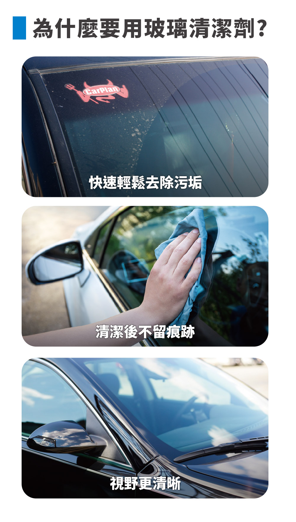 商品介紹. 強效配方快速輕鬆除去灰塵、油污、煙霧和指痕。. 可用在汽車玻璃內外,清潔後不留痕跡。. 視野更清晰,並提高駕駛安全性。. 適用於車窗、擋風玻璃和鏡子,汽車、居家都可使用 。