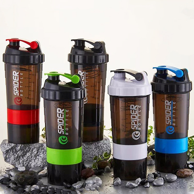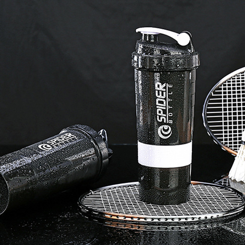 500ml 健身搖搖杯「附蛋白粉收納盒+攪拌球」