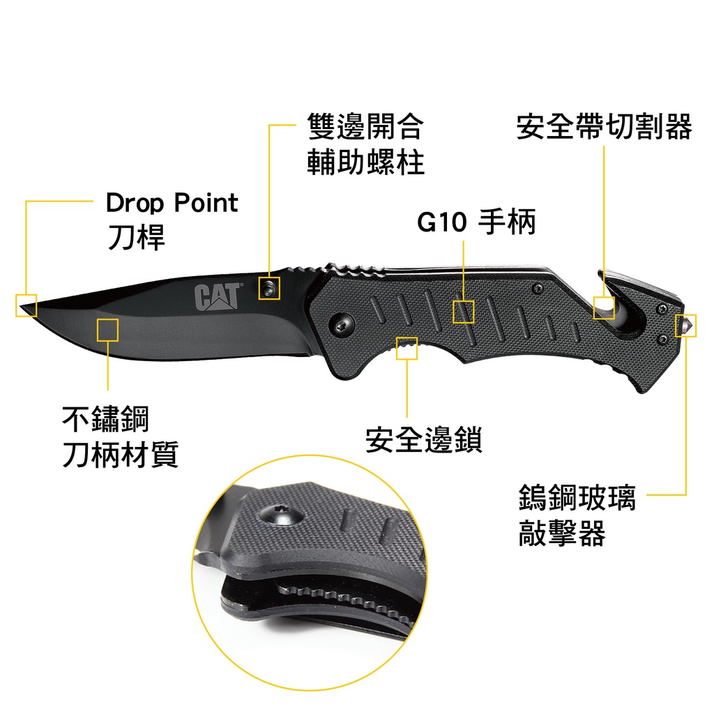 [CAT] 八吋多用途摺疊刀 - 窗戶擊破與安全帶切斷功能/980012
