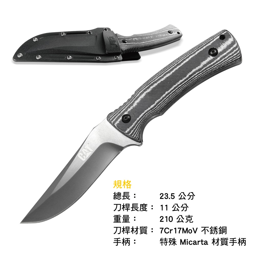 CAT工具戰術直刀採用頂級Micarta手炳結合了耐用、輕便和時尚於一體,刀刃採用7Cr17MoV 合金鋼具有高硬度和超強韌性,使折疊刀極為鋒利而又耐用,可做為安全防身工具、登山露營刀與戰術刀 使用。