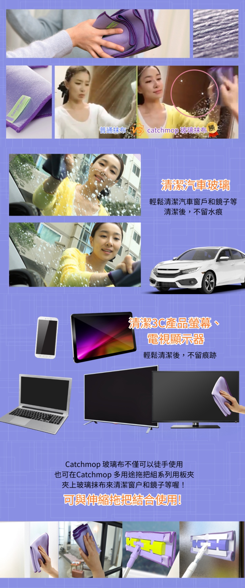 【THE LOEL】Catchmop 神奇玻璃抹布(1入裝&3入裝) / 適用於玻璃窗、汽車窗、鏡子、顯示器、電視屏幕等