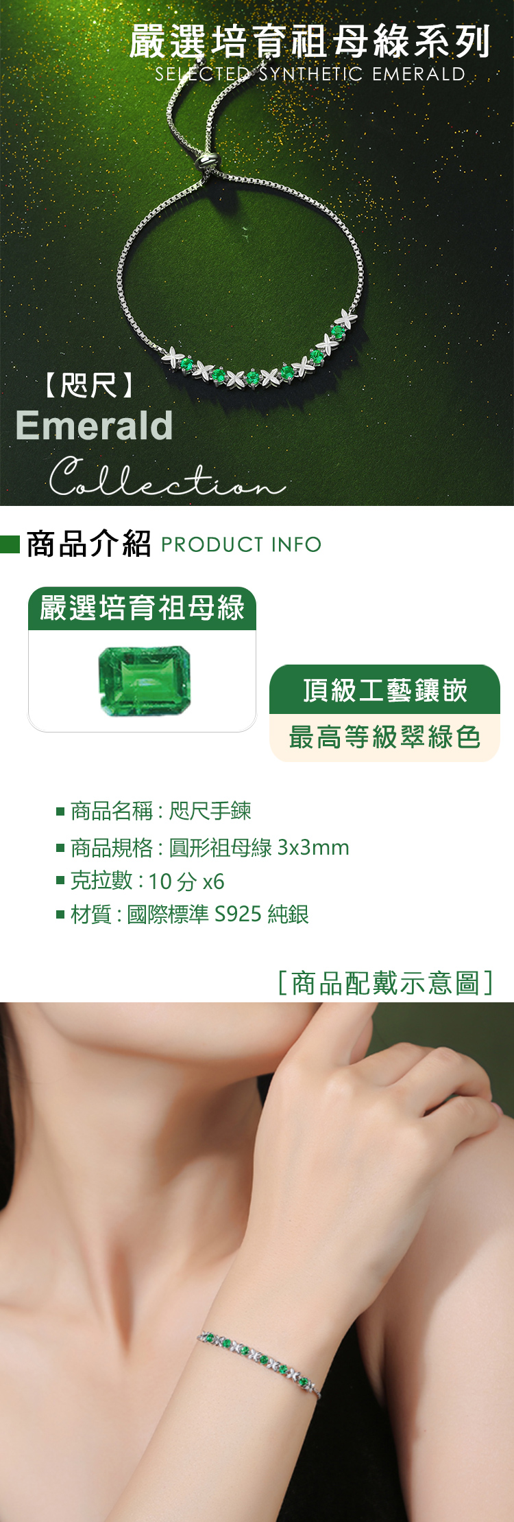 【CF鑽飾】手鍊 培育祖母綠《咫尺》10分*6 哥倫比亞祖母綠