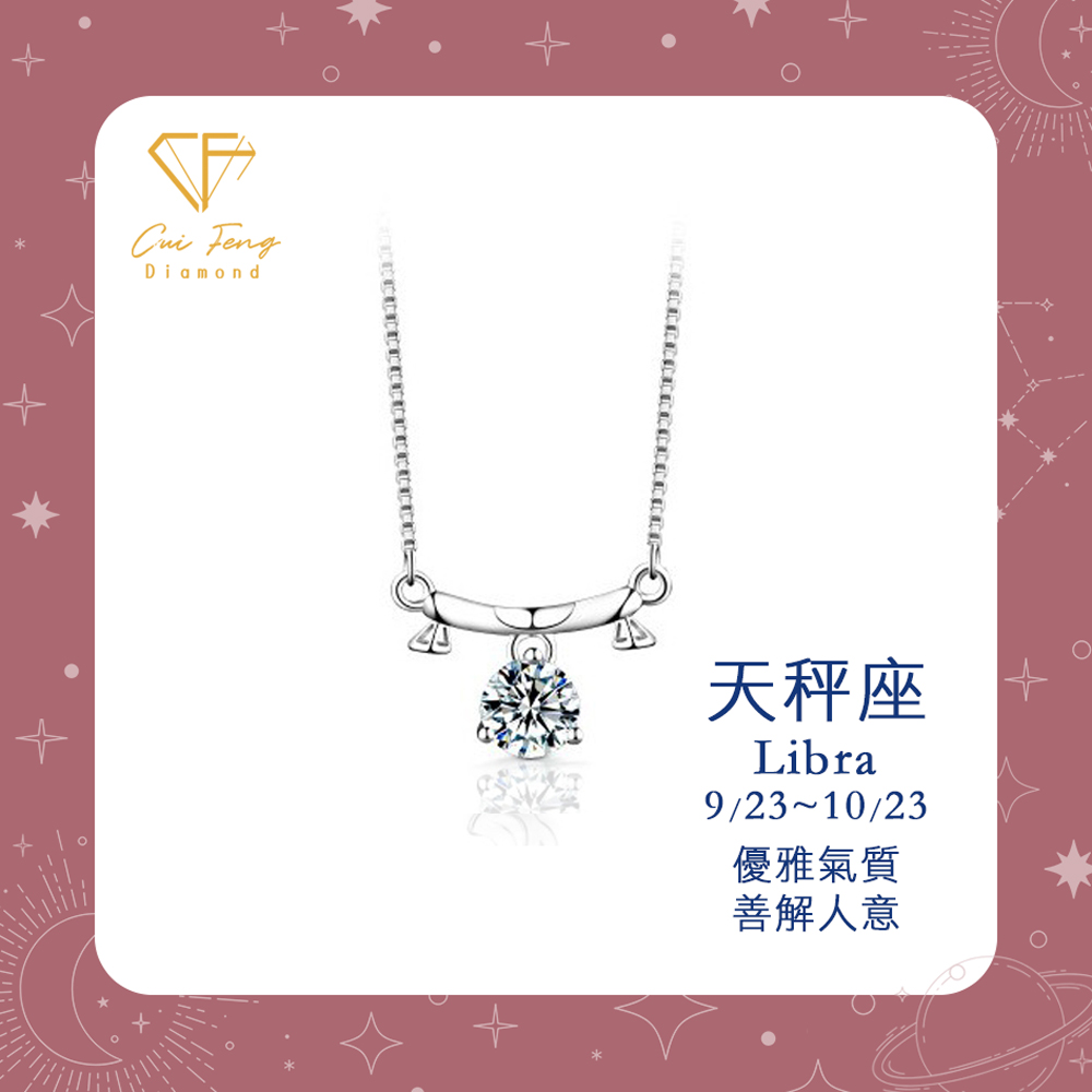 【CF鑽飾】項鍊 莫桑鑽《天秤座》1克拉 純銀星座項鍊