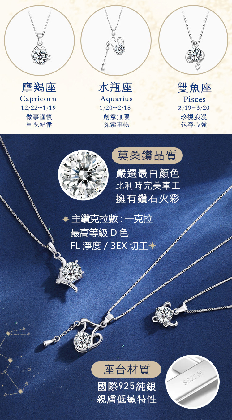 【CF鑽飾】項鍊 莫桑鑽《射手座》1克拉 純銀星座項鍊