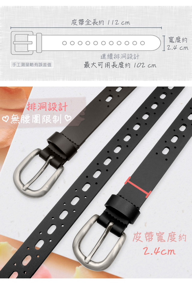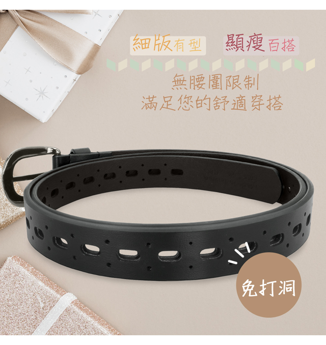 【CH-BELT 銓丞皮帶】曲線排洞 造型新潮女帶 細版女生皮帶腰帶(黑/咖)