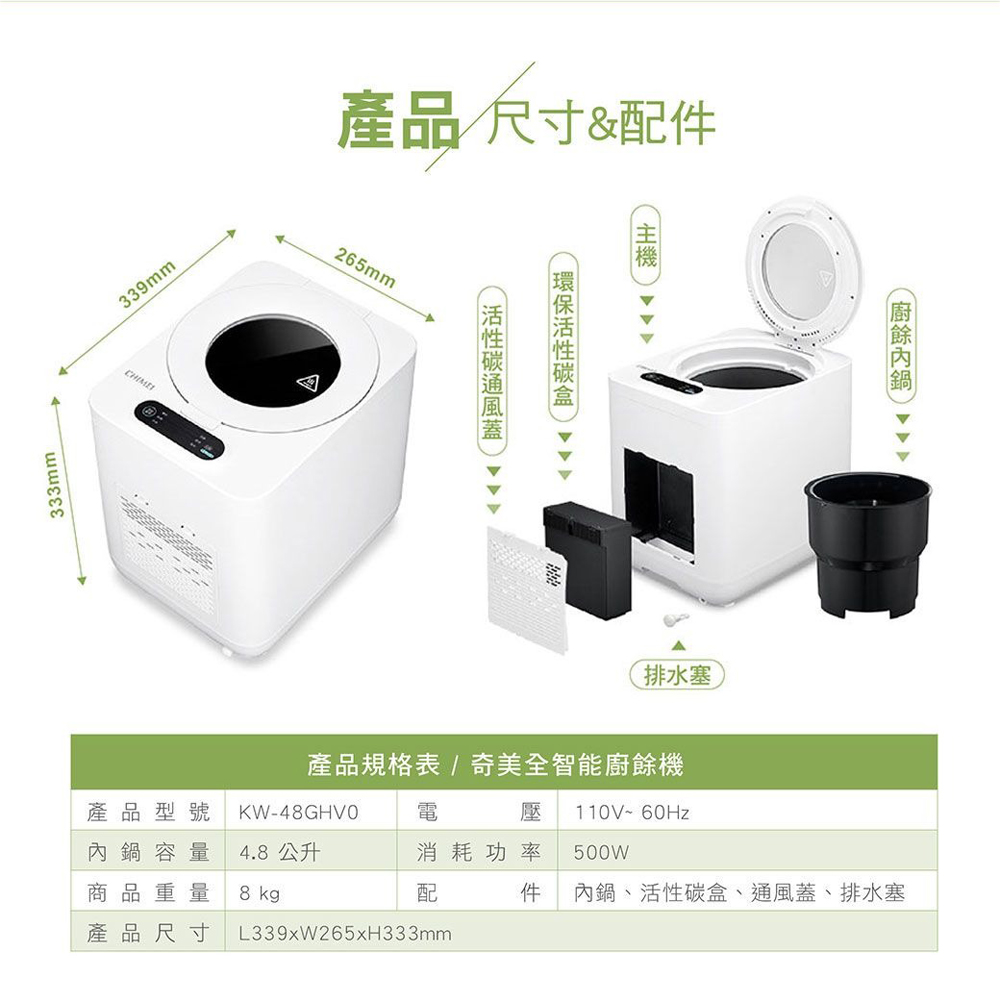 CHIMEI 奇美 4.8L 全智能 多重過濾自清潔廚餘機 KW-48GHV0