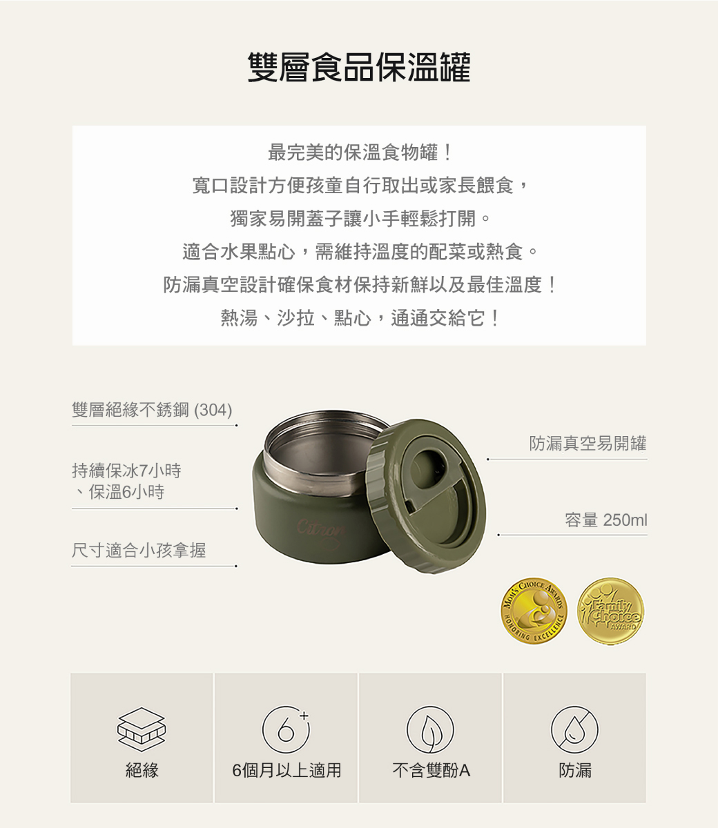 官方直營【Citron】雙層食品保溫罐_森林綠
