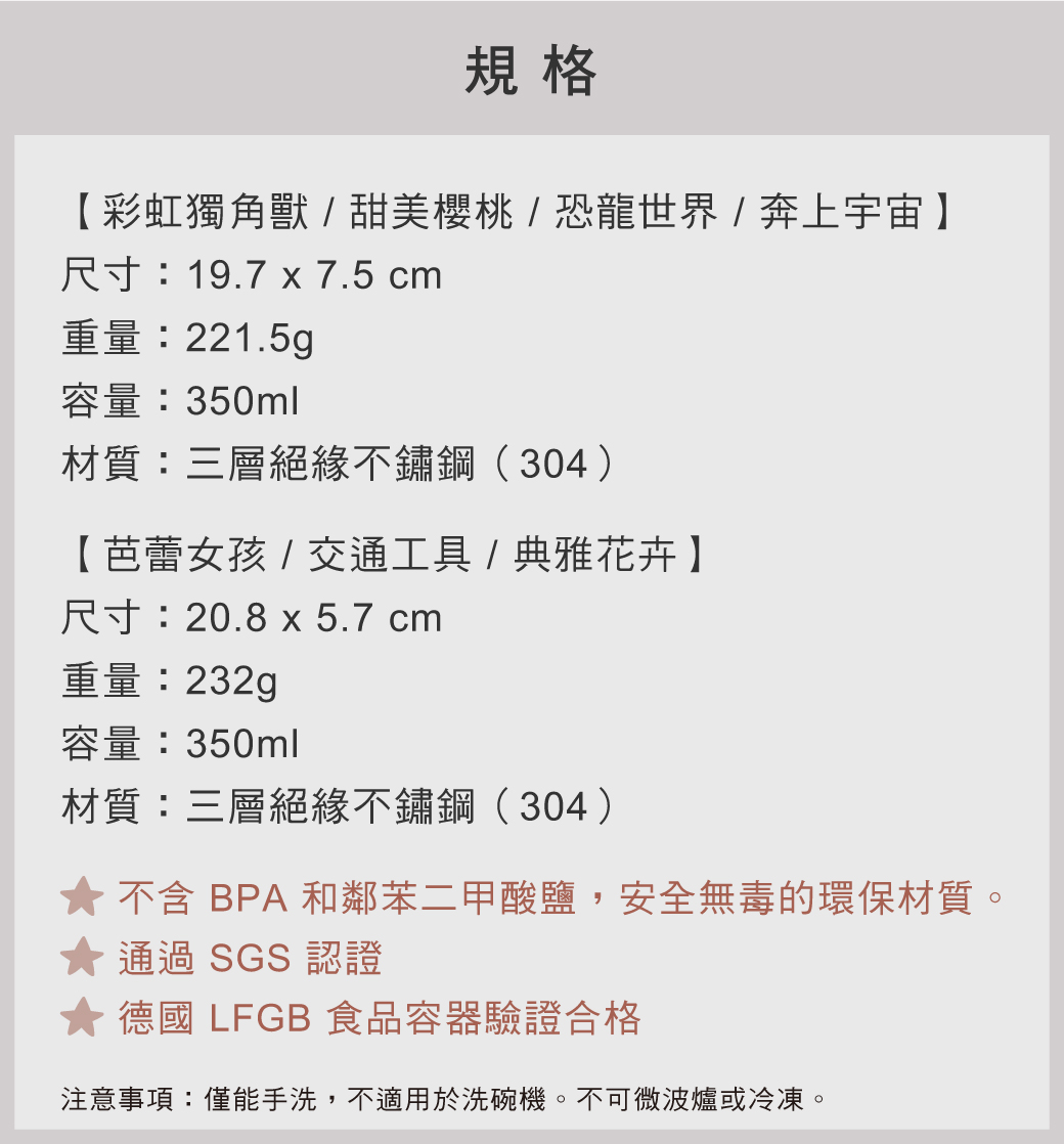 ✔通過SGS 認證德國LFGB食品容器驗證合格✔三層絕緣不鏽鋼 (304)✔防漏設計✔保持水冷長達 24 小時,熱水長達 12 小時✔不含 BPA 和鄰苯二甲酸鹽的材料可確保您的安全和環境✔創新的QR Code技術,讓您不再尋找丟失的瓶子✔包括兩根吸管和一個清潔刷✔僅能手洗。不適用於洗碗機。✔不適用於微波爐或冷凍。