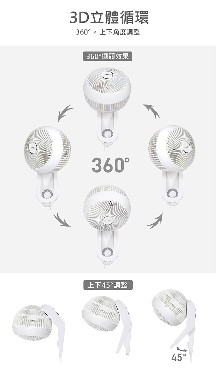 【Claire】 360°球型9吋循環壁扇CSK-BL09SW