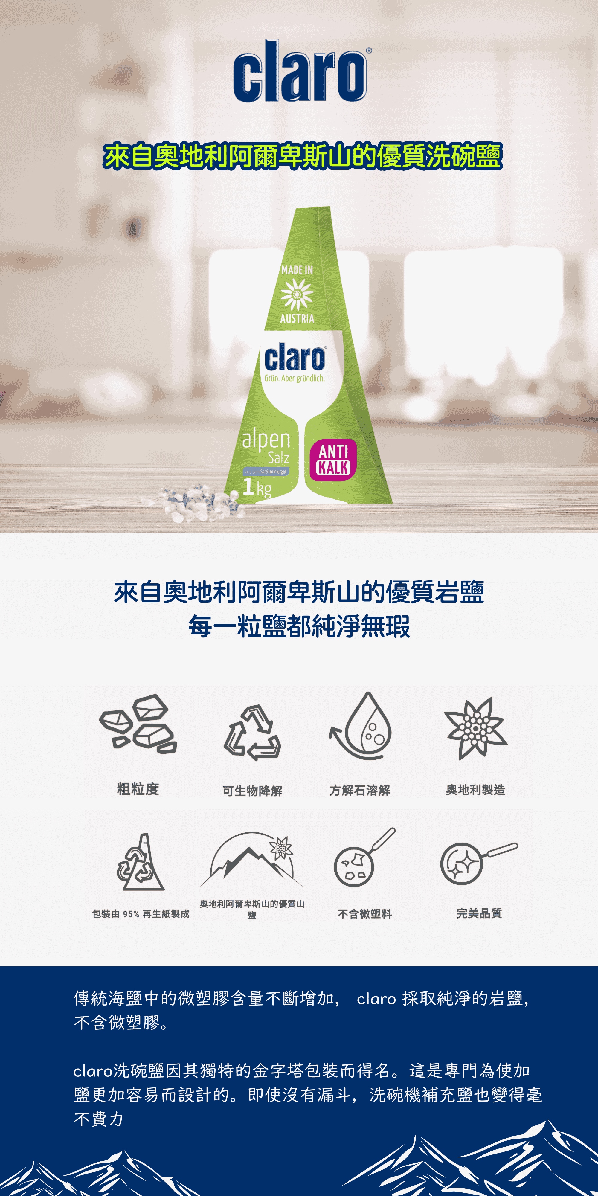 [claro] 奧地利阿爾卑斯山 優質洗碗鹽 1kg