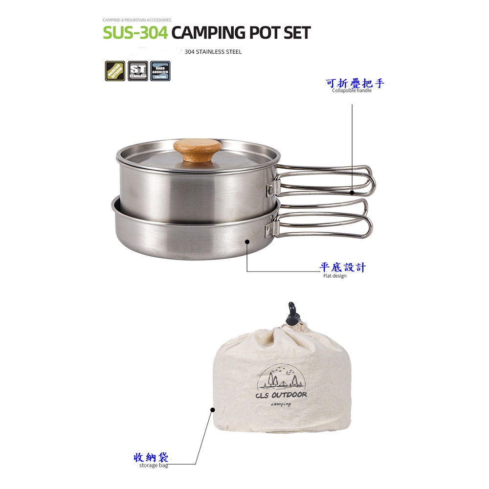 CLS 304 不鏽鋼套鍋組 二件組 超輕量鍋具 露營登山必備 高山鍋具 野營鍋具 露營鍋具 戶外鍋具