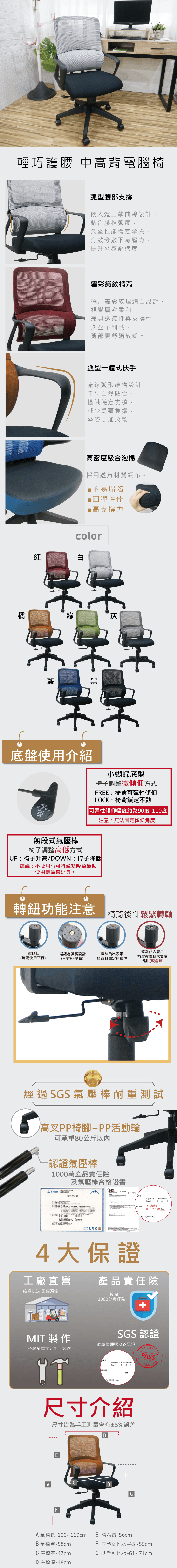 產地:台灣 尺寸:如圖標示 材質:高彈性透氣網布+合格認證氣壓棒+五爪椅腳+鐵件 組裝方式:此商品需自行組裝、附組裝說明書及組裝影片QR碼 保養方式:請勿水洗勿漂白勿烘乾,擦拭即可 👍🏻氣壓棒通過SGS認證 👍🏻工廠直營維修快速配件齊全 👍🏻台灣師傅在地手工製作 👍🏻已投保1000萬產品責任險
