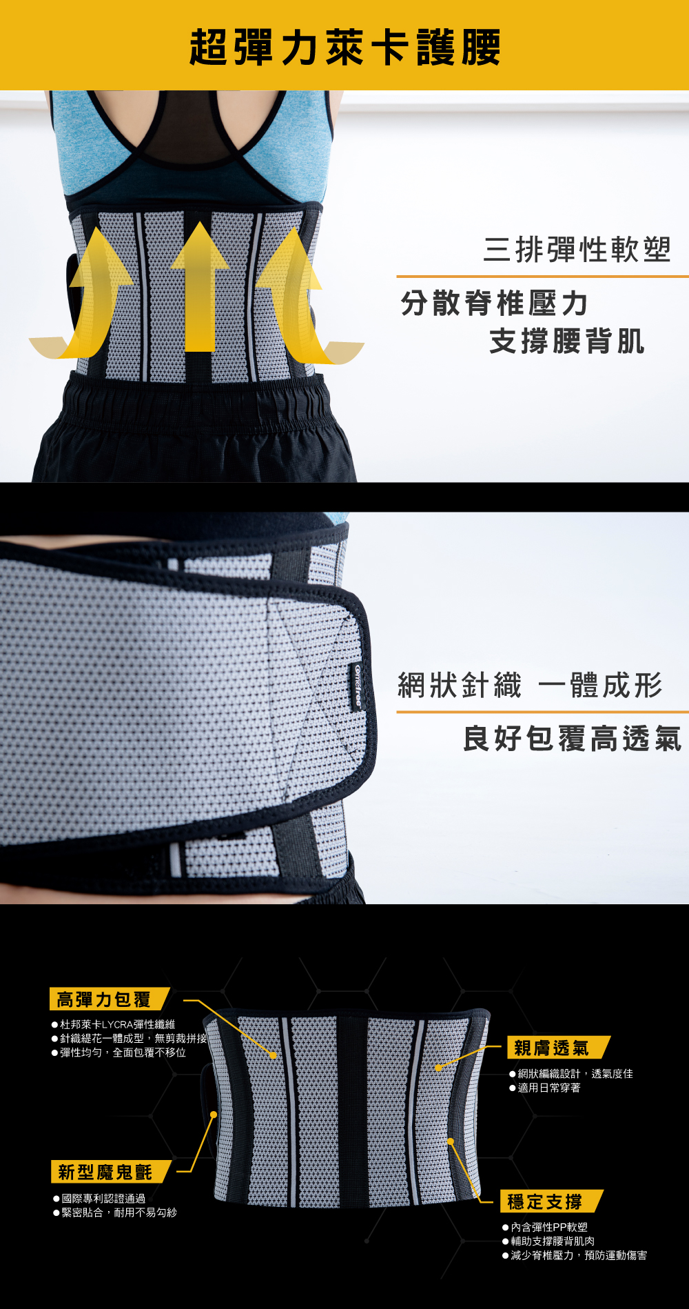 環形雙層編織強化彈性,穩定包覆關節部位 輕薄舒適,延展性高,不含乳膠成分,可安心使用 透氣網布加強膝窩服貼度,減少關節壓力 均勻橫向拉力,支撐肌肉及預防運動傷害