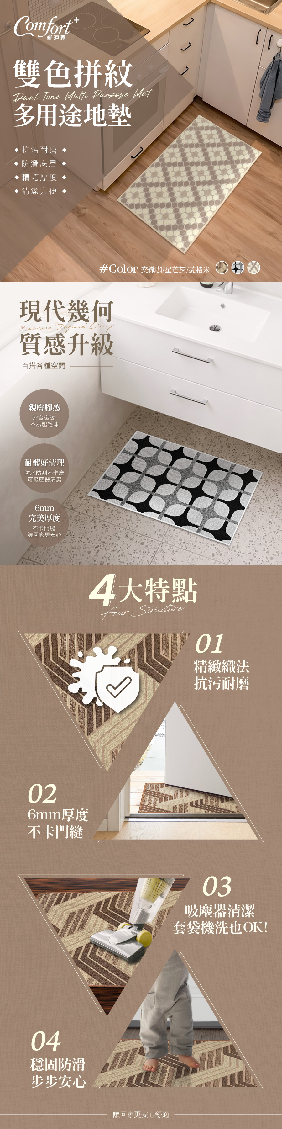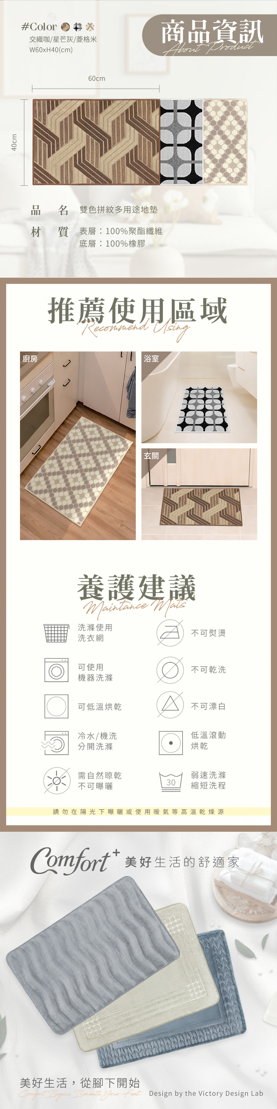Comfort+雙色拼紋多用途地墊60x40(顏色隨機出貨)
