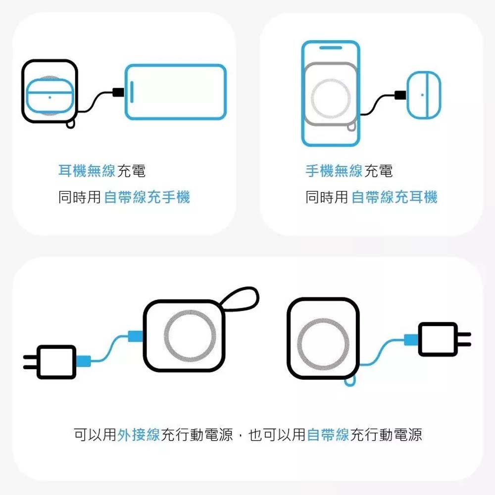【產品規格】電芯容量:3.85V~10000mAh(38.5Wh)額定容量:5V~6200mAh/9V~3300mAh/11V~2700mAh/12V~2400mAh輸入:TYPE-C線:5V3A/9V2A(Max:18w)TYPE-C孔:5V3A/9V2A(Max:18w)輸出:TYPE-C線:5V3A/9V2.22A/12V1.67A/11V1.8ATYPE-C孔:5V3A/9V2.22A/12V1.67A/11V1.8AUSB-A孔:5V3ALightning線:5V2.4A無線充電:5W(5V1A)/7.5~10w(9V1.12A)/15W(9V1.67A)多口同時輸出(TOTAL):5V1A(Max:5W)邊充邊放:輸入5V2A,總輸出5V0.5A+無線5W使用溫度:0~35度電池類型:Li-polymer bettery cell尺寸:79x68x26mm重量:約198g材質:電子元件、鋁合金、SGS認證材料