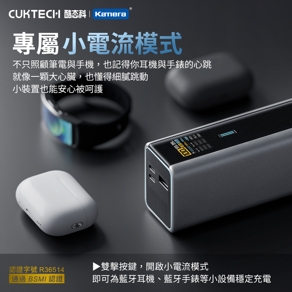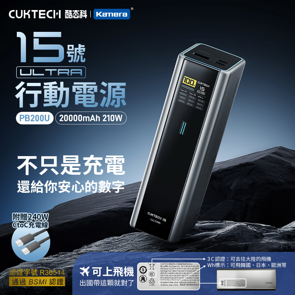 產品特點 ● 數顯螢幕設計,每一%都看得見!給你最真實安全感。這不只是數字,而是出門的底氣。看見電量的瞬間,你就知道今天的行程不會被打斷。● 單手可握,經典雙色可選,工業魅力一眼可見,低調有質感,便於隨身攜帶。● 20000mAh大容量續航,陪你熬過漫長一天。不論是出差、旅行,還是加班,它都像隨身的第二個電池庫存,陪你撐到最後。● 單口輸出可達140W MAX,不只能充手機,更能充筆電。告別原廠大磚頭,出差、旅行靠它就對了,一顆充飽你所有裝置。● 雙槍狂暴自充,支援雙口合力輸入最高165W,讓等待變得奢侈。● 2C 1A設計,支援三台設備同時充電,不再排隊等充電。手機、平板、耳機一次滿電,不必輪流、不必妥協。● 全面相容市面上的智慧型手機、筆電、平板、Switch 等主流電子設備,支援 FCP、AFC、QC3.0、PD3.1、Apple 2.4A、PPS、UFCS融合快充 及小米 120W 快充等多種協議,滿足各類快充需求。省去「帶不同線」困擾,是旅途中最懂你的「萬用插座」。● 具備小電流模式,不只照顧大裝置,連藍牙耳機、智慧手錶這些小東西,也能溫柔守護。專為藍牙耳機、智慧手錶等低功率設備打造,兼顧全面相容與安全充電。● 採用V0 防火外殼,堅持讓你“無懼過熱”,真正做到安全與美感兼顧。● 通過台灣 BSMI 認證(經濟部標準檢驗局的安全認證),給你看得見的安心、摸得到的信任。● 登機不煩惱,旅途安心同行的好夥伴!不只是能上飛機,而是陪你走遍世界的可靠旅伴。讓你的旅途沒有「斷電焦慮」。● 購買即附 6A 傳輸線,細節替你想好。買回家立刻快充,不必東湊西找。