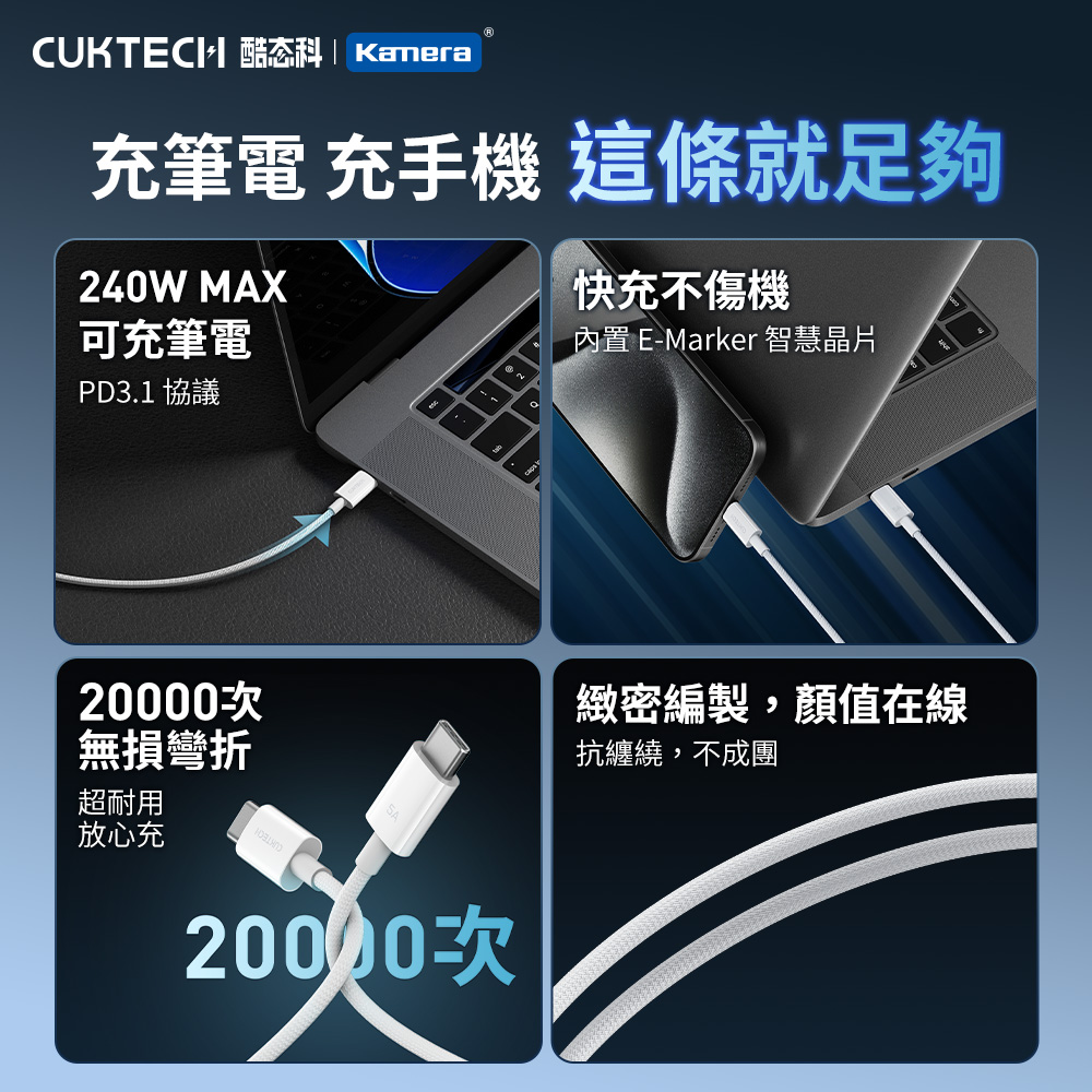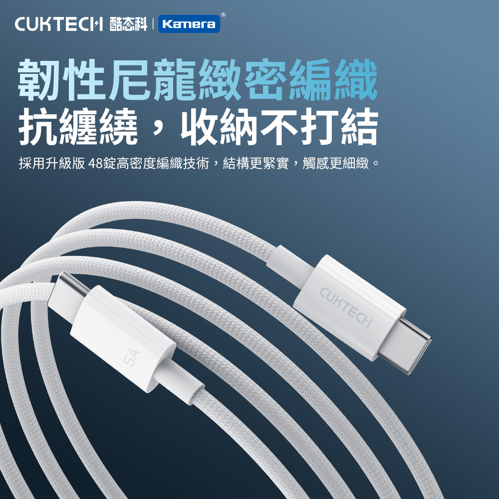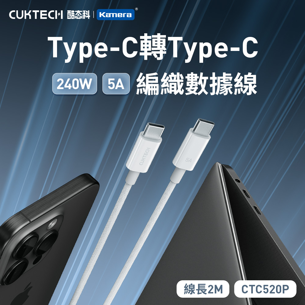 CUKTECH 酷態科 240W Type-C轉Type-C 5A充電線 傳輸線 2M 編織數據線 (CTC520P)