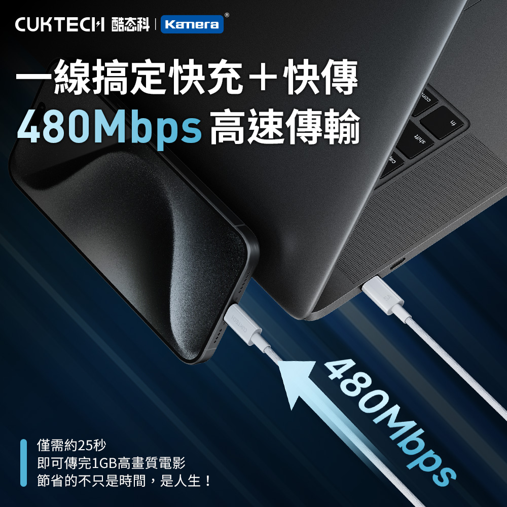 ● 傳輸+充電,一線搞定!480Mbps高速傳輸速度,拷貝1G影片只要約25秒,邊充電邊傳資料,效率翻倍。節省的不只是時間,是人生!