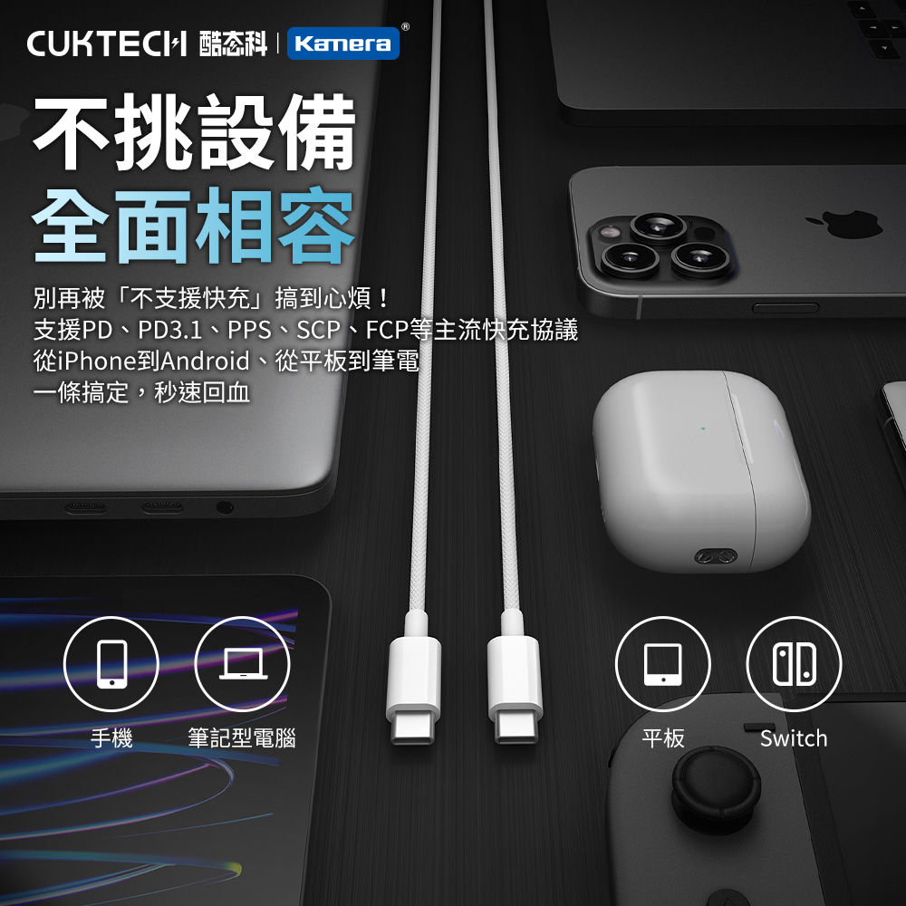 ● 別再被「不支援快充」搞到心煩!手機、筆電、平板全相容,支援PD3.1、PD、PPS、SCP、FCP等多種快充協議,充什麼都快又穩,Type-C設備全面通用,出門一條線就夠。