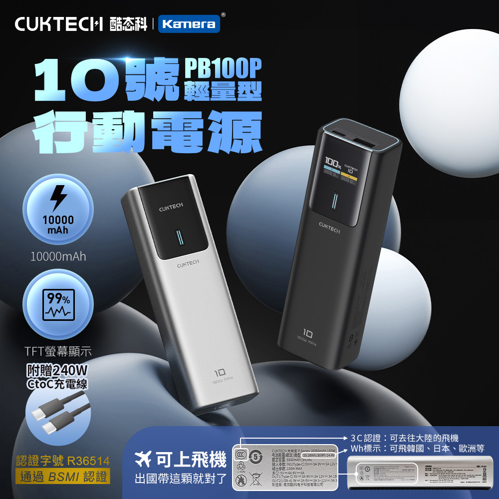 【Wh+CCC】CUKTECH 酷態科 10號 150W 行動電源 10000mAh 可充筆電 Wh標示 可上飛機 (PB100P) - 黑騎士