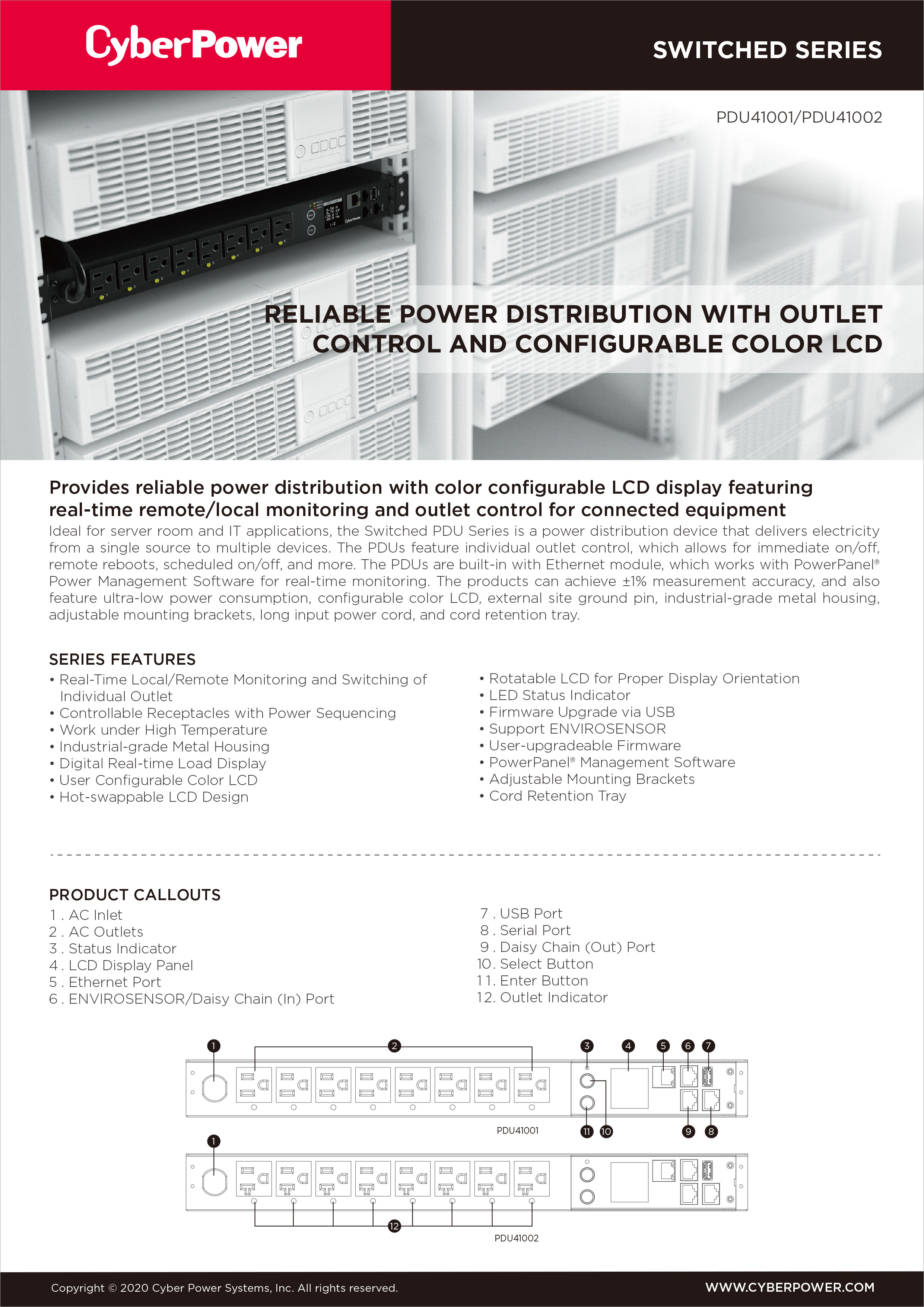昌運監視器 CyberPower PDU41002 機架式監控 智慧電源分配器 100-120V輸入電壓