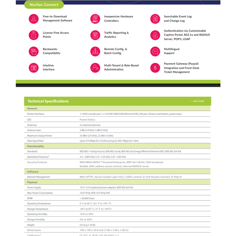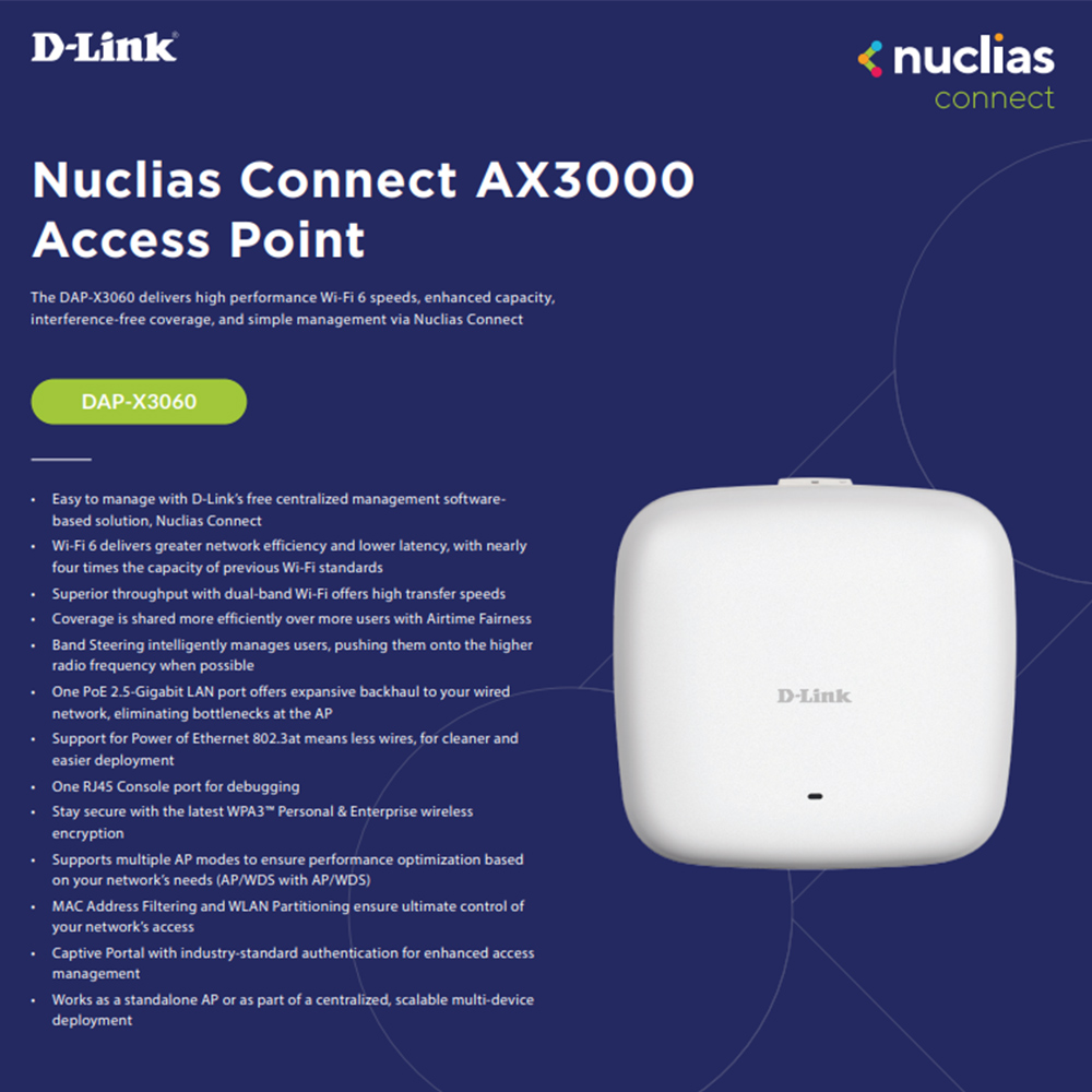 昌運監視器 D-LINK 友訊 DAP-X3060 AX3000 Wi-Fi 6 雙頻無線PoE基地台