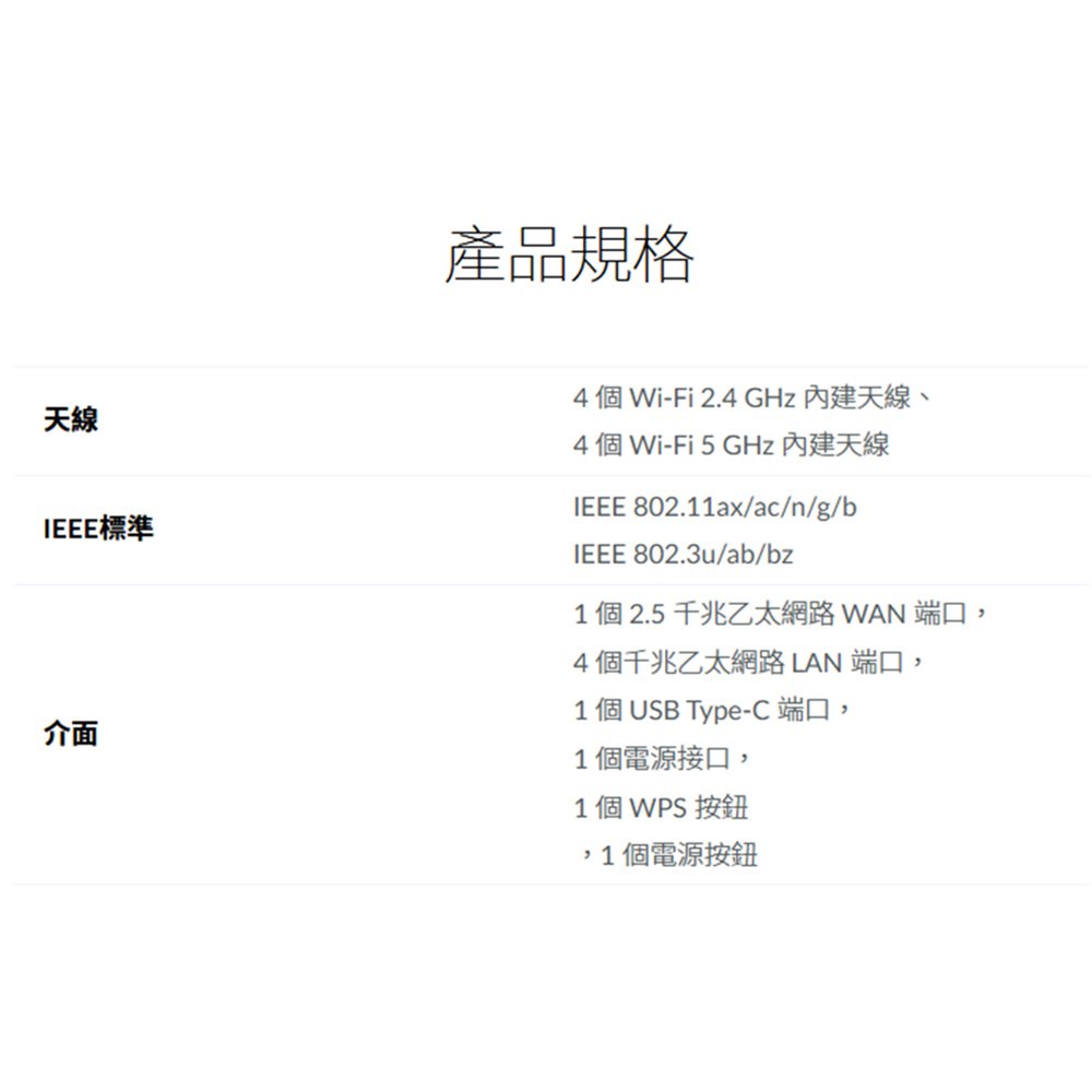 -雙頻AX6000 Wi-Fi 6 : 支援多種設備,最高可達6000 Mbps的超高速連接。