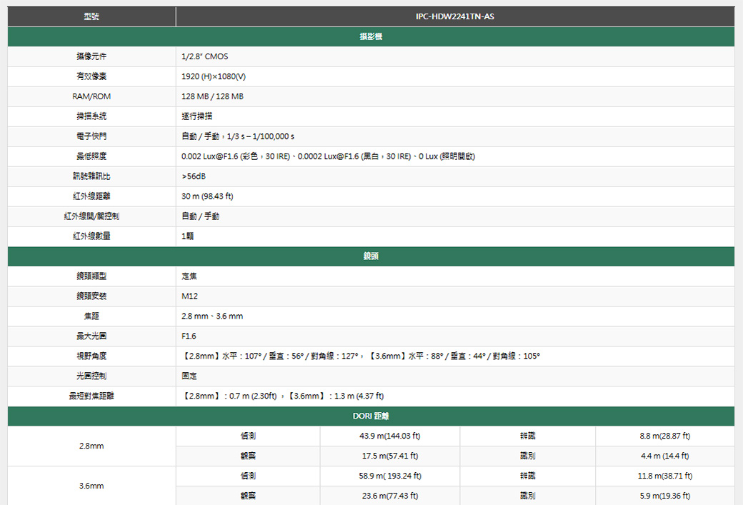2MP 1/2.8″ CMOS 攝像元件,清晰高畫質