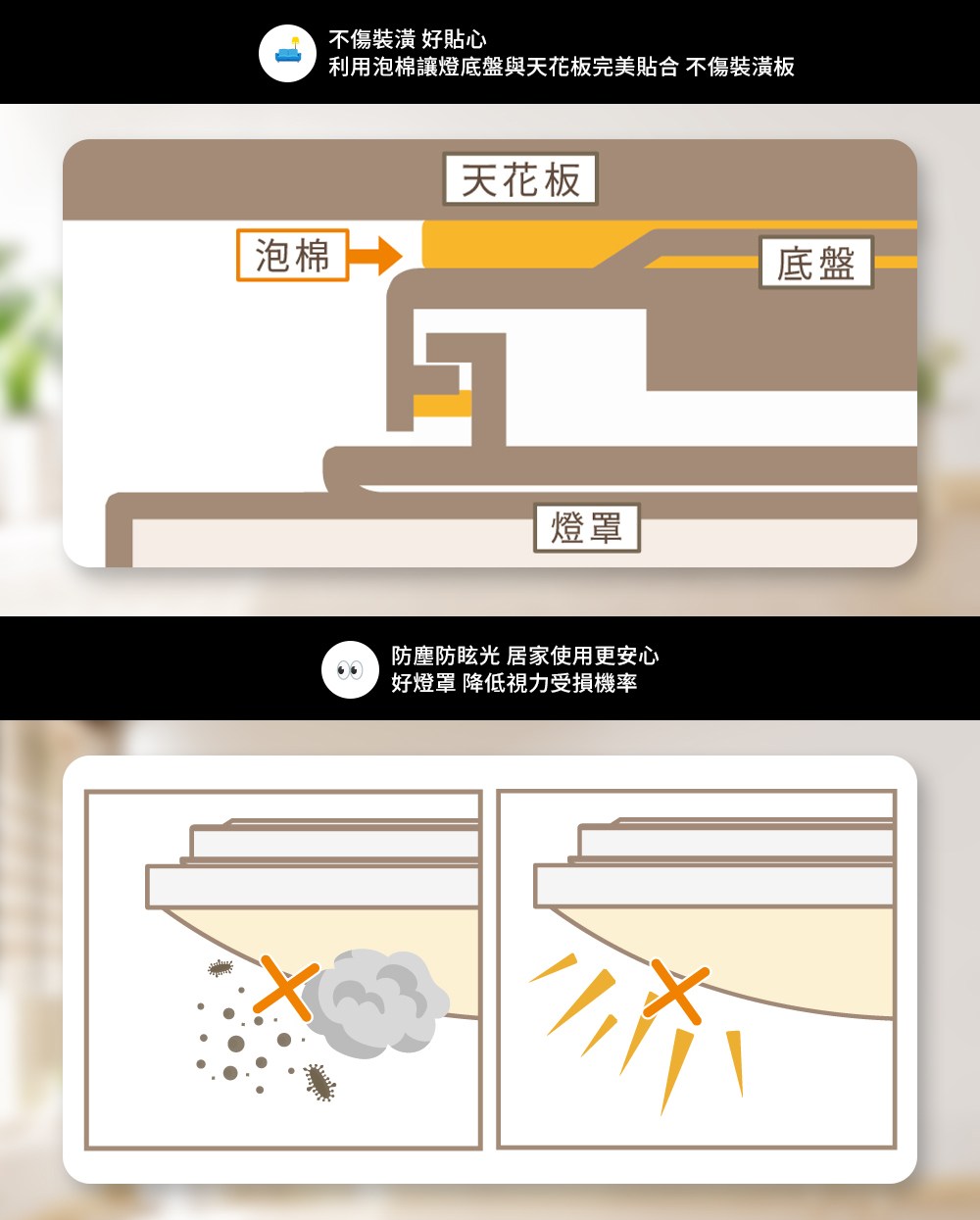 ⭐雅緻燈罩高雅不眩光⭐燈板防觸電設計,絕緣安全⭐相較傳統光源省電 50% 以上