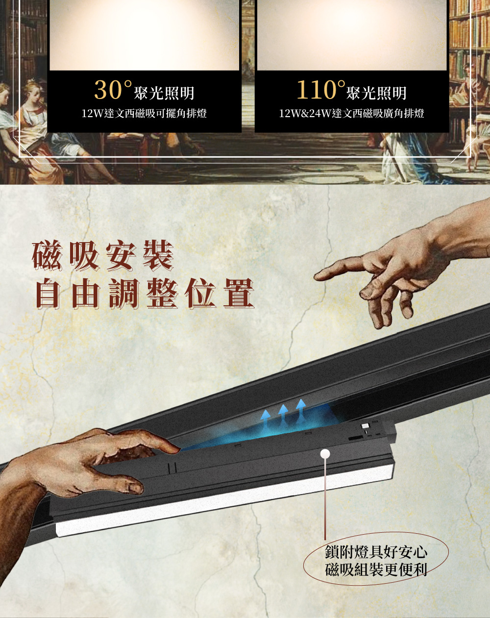 DanceLight舞光 2入組 12W 達文西磁吸 30度窄角排燈(白光/自然光/黃光)