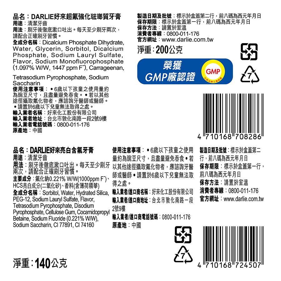 好來超氟強化琺瑯質200gx2+亮白牙膏140gx1超值組