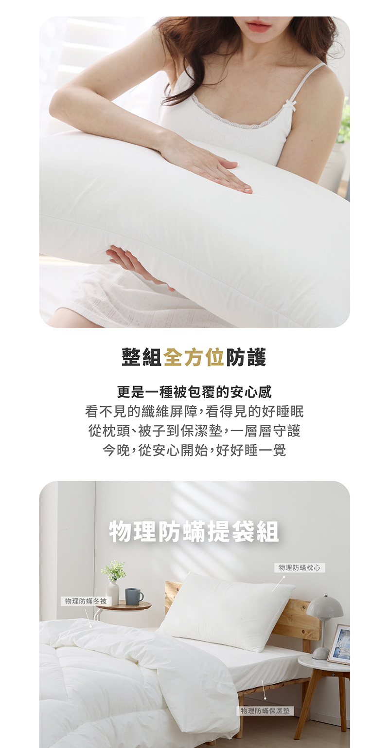【Darphia 朵法亞】防蟎守護-物理防蟎提袋組 ( 枕頭+冬被+保潔墊)