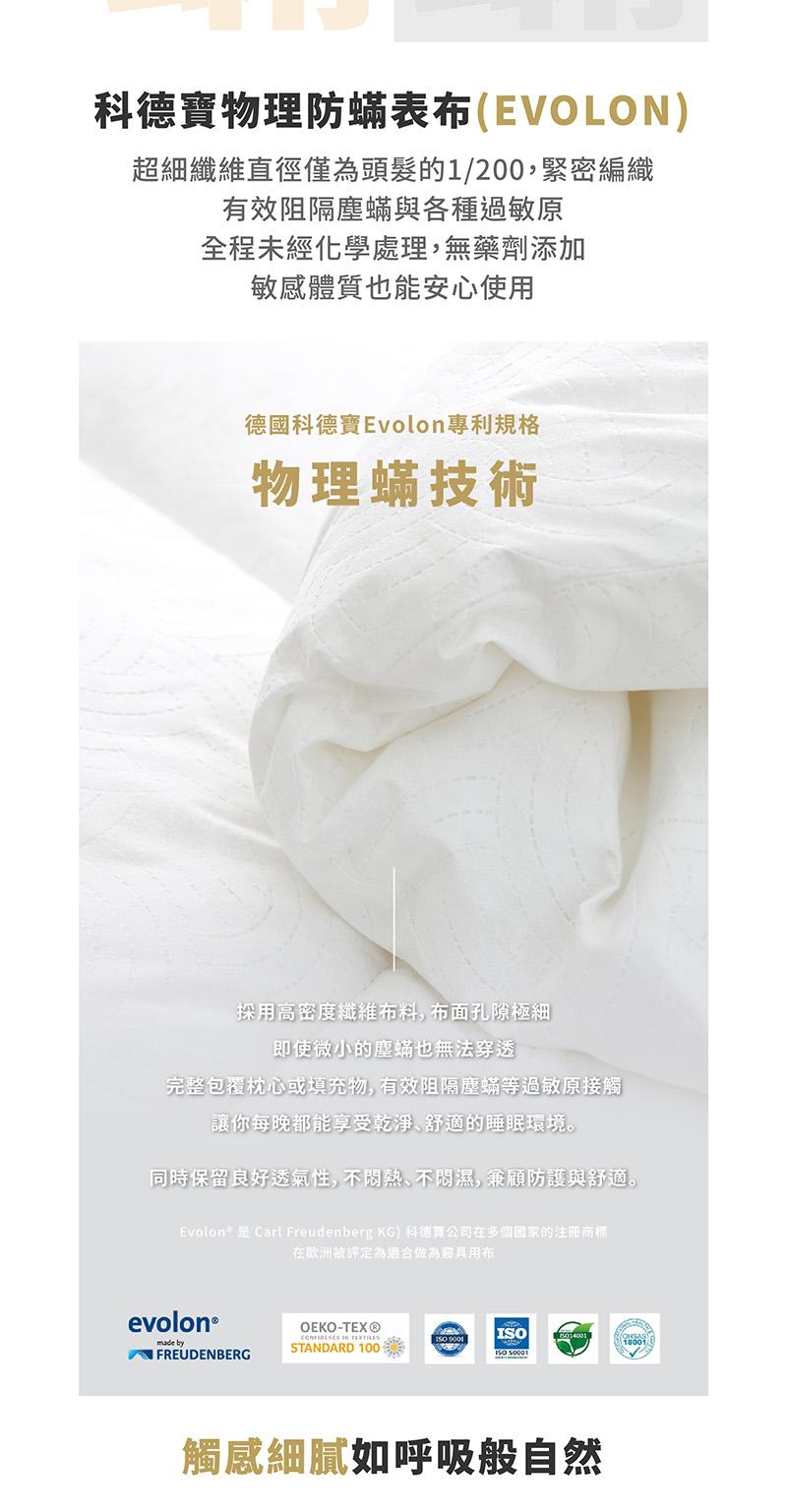 ▪ 採用科德寶物理防蟎表布 ( EVOLON )