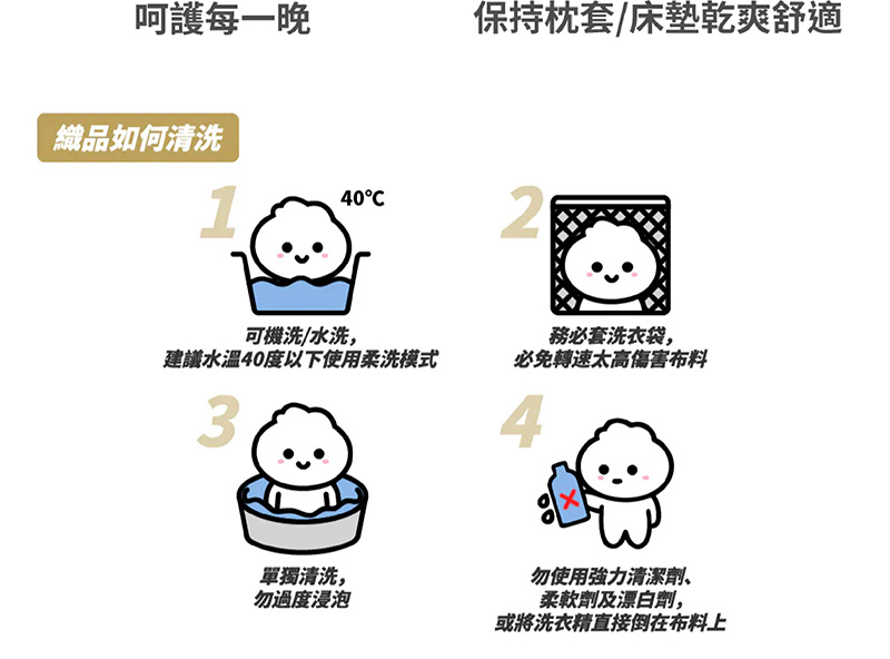 1. 保潔墊可機洗、水洗,建議水溫40度以下