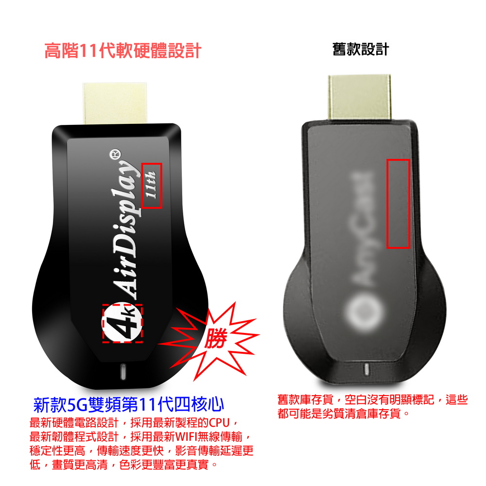 【第11代四核心】4K AirDisplay雙頻5G無線影音傳輸器(附4大好禮)