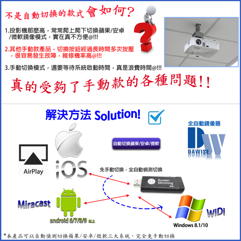 【六代旋轉款】Dawise全自動無線影音鏡像器(附4大好禮)