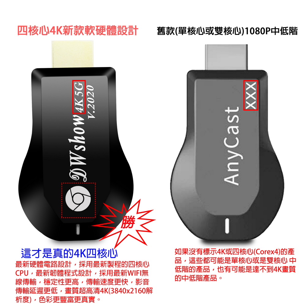 【四核心4K頂級款】DWshow雙頻5G全自動無線HDMI影音傳輸器(附4大好禮)