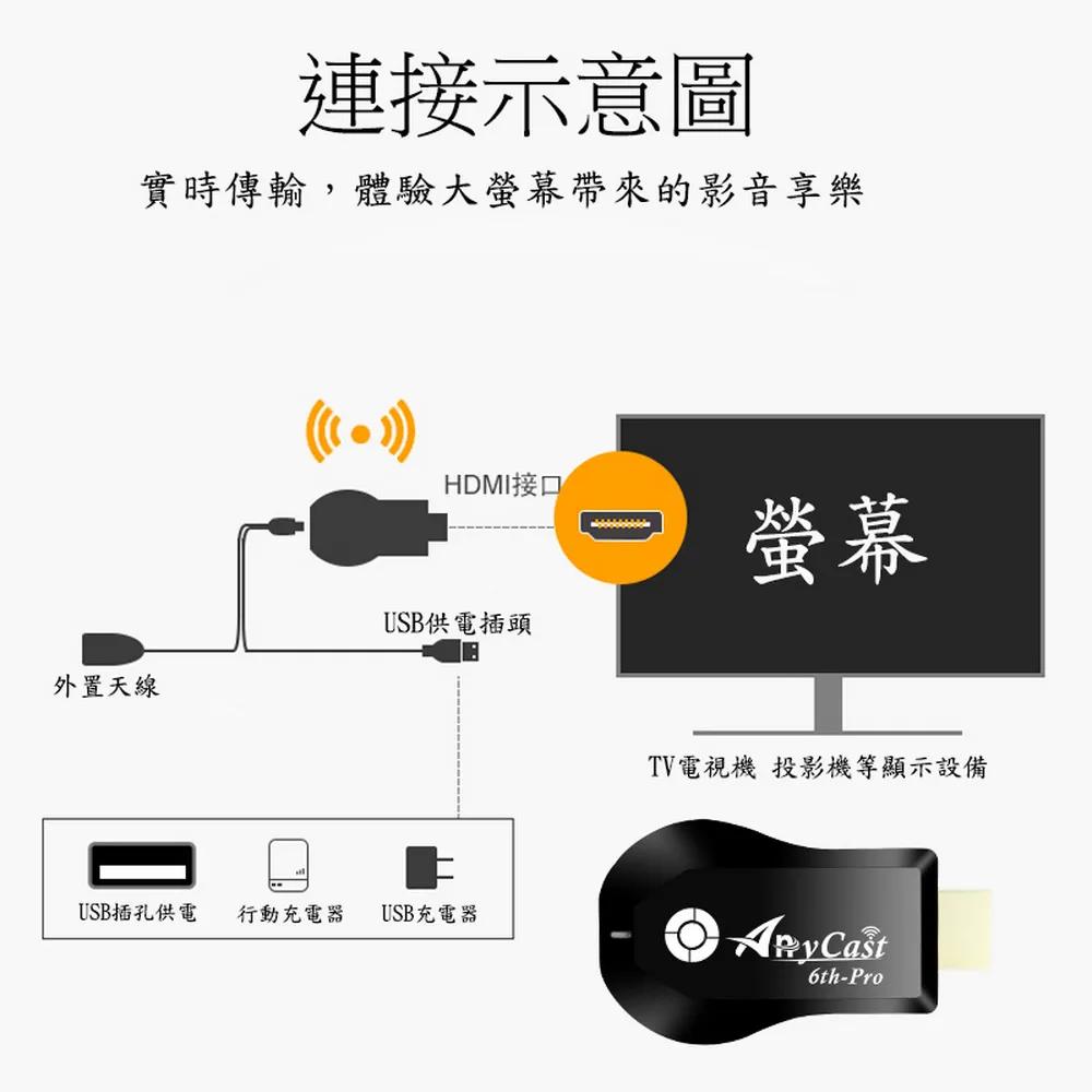 【四扇葉6th-Pro】精緻款六代AnyCast全自動HDMI無線影音鏡像器(附4大好禮)