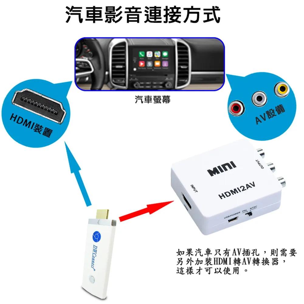 隨時隨地大螢幕娛樂操作簡單影音投影一機多用,教學娛樂導航全搞定免安裝任何軟體無線連結,影音同步分享支援蘋果/安卓/電腦無線投影可電腦直接電視同步顯示高畫質輸出,高速穩定傳輸《商品介紹》隨著智慧型裝置普及,手機、平板、電腦已成為日常不可或缺的工具。但螢幕太小往往影響學習與娛樂體驗。現在,只要一個 無線投影器,就能輕鬆將螢幕畫面同步到電視或投影機,大螢幕享受更清晰、更震撼!隨插即投:操作簡單,免驅動免APP。跨平台支援:支援 iOS / Android / Windows / Mac OS。高畫質輸出:支援 Full HD ,清晰不卡頓。穩定傳輸:低延遲設計,影音同步。輕巧便攜:出差、上課、居家,一機搞定。【應用場景】居家娛樂:追劇、看電影,大螢幕更沉浸。遊戲對戰:手機秒變遊戲主機,刺激加倍。教育教學:課堂同步投影,互動更生動。會議簡報:商務展示更專業,告別繁瑣連線。汽車導航:手機地圖投影到大螢幕,安全又直觀。《注意事項》1.如果要使用在汽車的螢幕投影,請先確認汽車是否有HDMI或AV影音輸入,請確認後再進行購買。2. 本商品是HDMI影音傳輸介面,如果是汽車是AV(黃白紅三色插孔)則需要另外自行準備HDMI轉AV的轉換器才可以使用。《商品配備》無線影音鏡像傳輸器 x1說明書 x14大好禮: USB充電器x1 + HDMI傳輸線x1 + USB充電線x1 + 手機支架x1《商品規格》廠牌: Dawise型號: 八代WD39顏色: 白支援的設備: 蘋果,安卓,微軟裝置支援影音同步傳輸模式: AirPlay/Miracast/DLNA/WIDIUSB供電(DC+5V)HDMI連接電視產地: 中國大陸產品保固: 主機保固3個月,配件/贈品保固1個月,保固範圍不包含人為損壞。《NCC認證字號》 CCAJ15LP0827T6