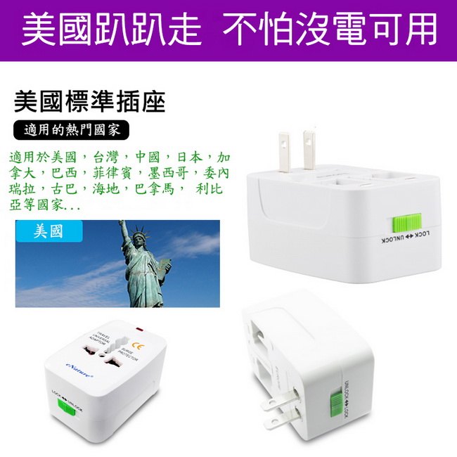 《商品介紹》出國旅遊必備的電源插座插頭All in One設計體積小,攜帶最方便■ 電源指示燈設計■ 收納方便,不占空間■ 插座安全防護設計■ 適用多國電源插座■All in One電源插頭插座設計■適用全球主要國家■插座安全防護設計■使用簡單,隨插即用■具電源指示燈■四種國際標準電源插頭■出國洽公旅遊,不可少的隨身插座■適用美規,歐規,英規,日規的電源插頭