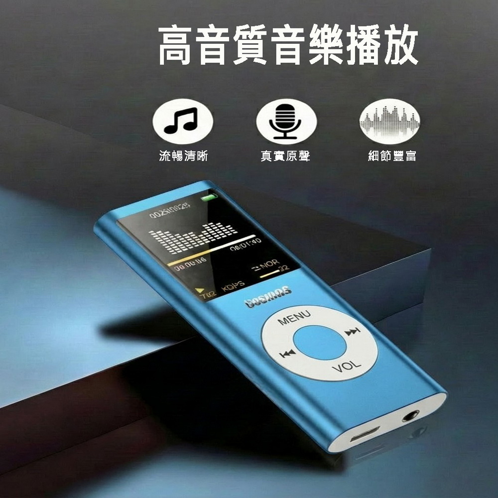 《商品介紹》聆聽世界,聲動人心~可看影片及照片1.8吋26萬色TFT螢幕高音質MP3音樂播放彩色照片及影片播放拒絕手機干擾,找回專注學習不妥協的音質,獻給挑剔的耳朵,聽見最真實的聲音。戴上耳機,世界只剩下你和好音樂。晨跑、夜跑、健身房的最佳運動夥伴,輕巧隨行,節奏隨心。把音樂收進口袋,把生活留給自己。支援高品質音樂播放真正支援電影播放最高等級真正1.8吋大螢幕TFT屏26萬5000色彩色螢幕多種音效模式,讓您愛怎麼聽就怎麼聽電子相簿JPEG圖片瀏覽功能電子書TXT文字閱讀功能背光時間設置、省電模式設置、螢幕亮度設置最新全彩圖形化界面操作,方便易懂可設置在多長時間內無按鍵操作屏幕變黑(0~30秒)使用電源是內置高效能鋰電池《注意事項》本商品內建記憶體,無插卡擴充功能音樂需MP3格式,影片須轉檔為AMV檔案格式