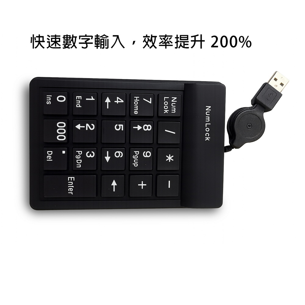 《商品介紹》數字輸入,快人一步小巧便攜,隨插即用靜音設計,專注不打擾辦公效率翻倍,輕鬆搞定資料伸縮線設計,告別纏繞即插即用,無需安裝驅動伸縮 USB 線,收納方便不打結輕薄便攜,外出辦公好幫手隨插即用 Plug & Play,不需要安裝驅動程式輕薄便攜,外出辦公好幫手。USB伸縮線設計,不怕纏繞。耐用設計,長時間使用不卡鍵,快速數字輸入,效率提升 200%。輕盈設計,隨身攜帶無負擔。筆電輸入好幫手,資料處理更高效。數字輸入更快,省時省力不只是鍵盤,更是你的效率神器。
